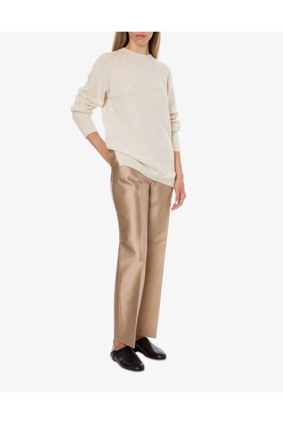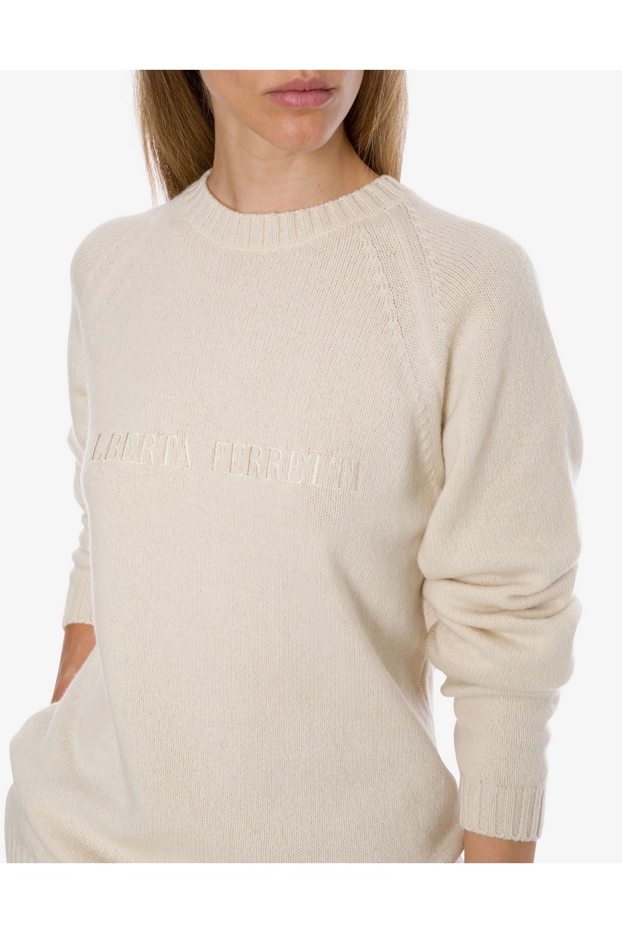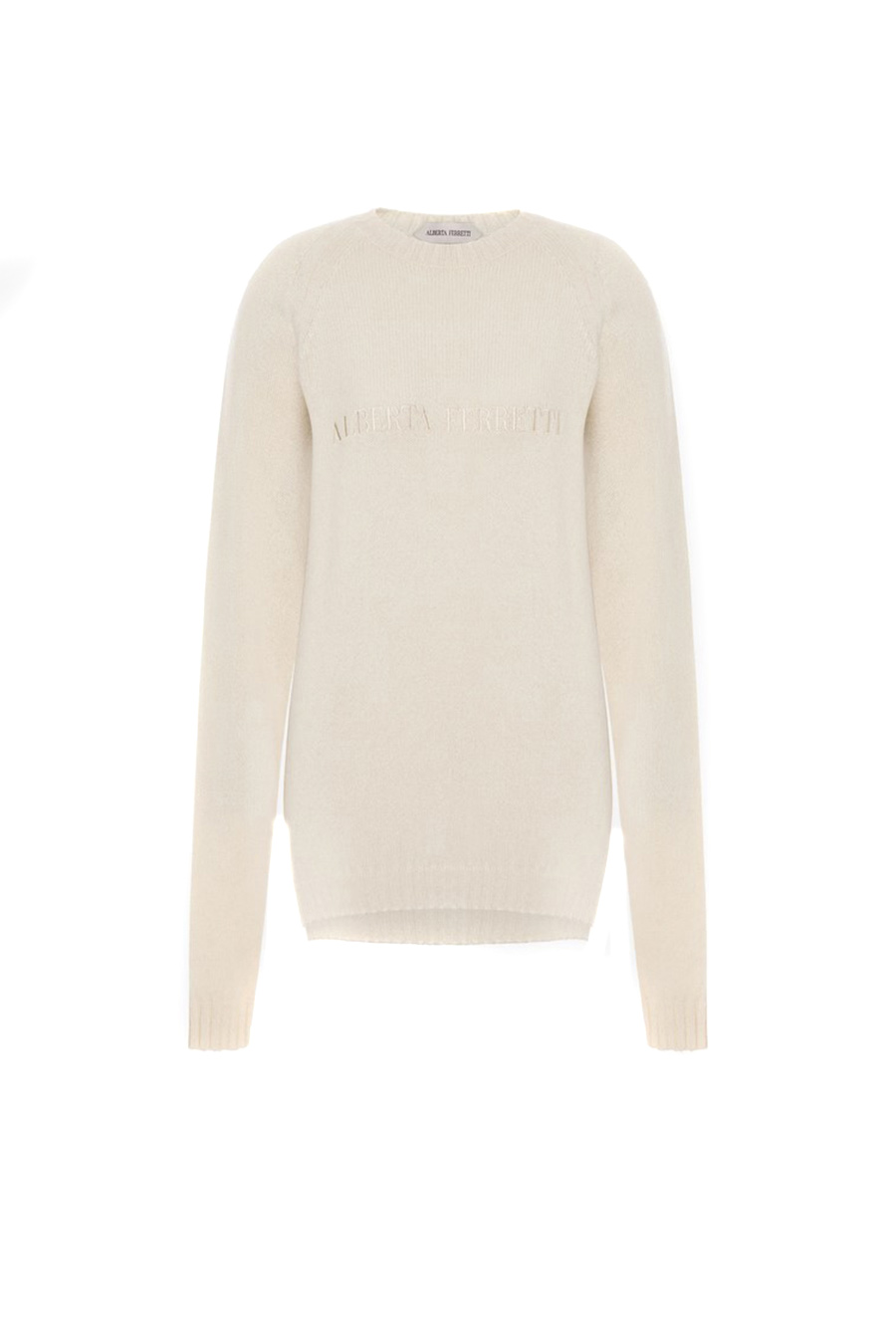 Alberta Ferretti logo cashmere jumper with round neckline, balloon sleeves and tone-on-tone logo.