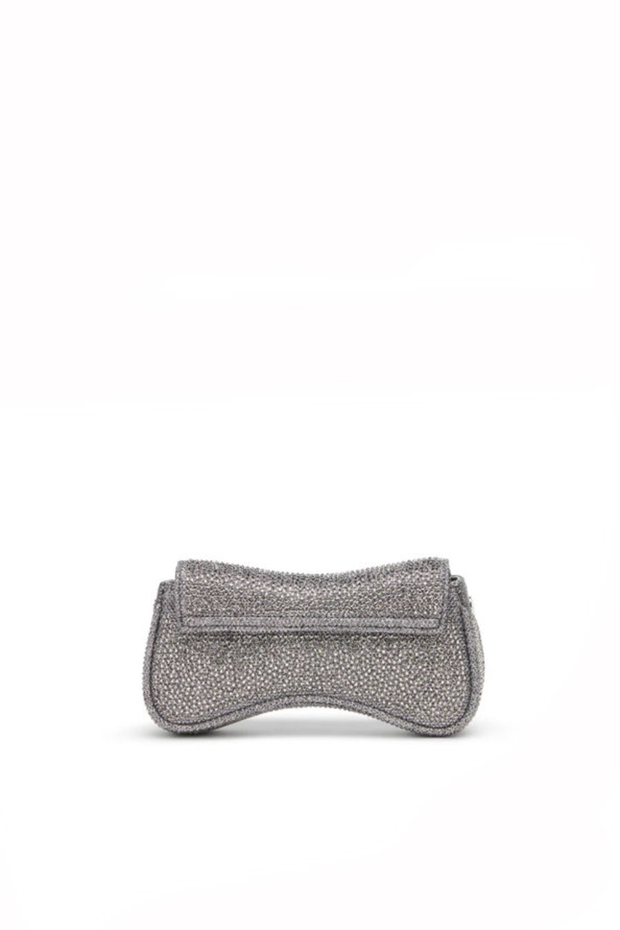 The curved shape, inspired by video game controllers, is made from Lurex fabric studded with rhinestones to light up your next party.
