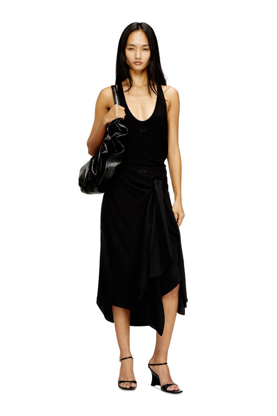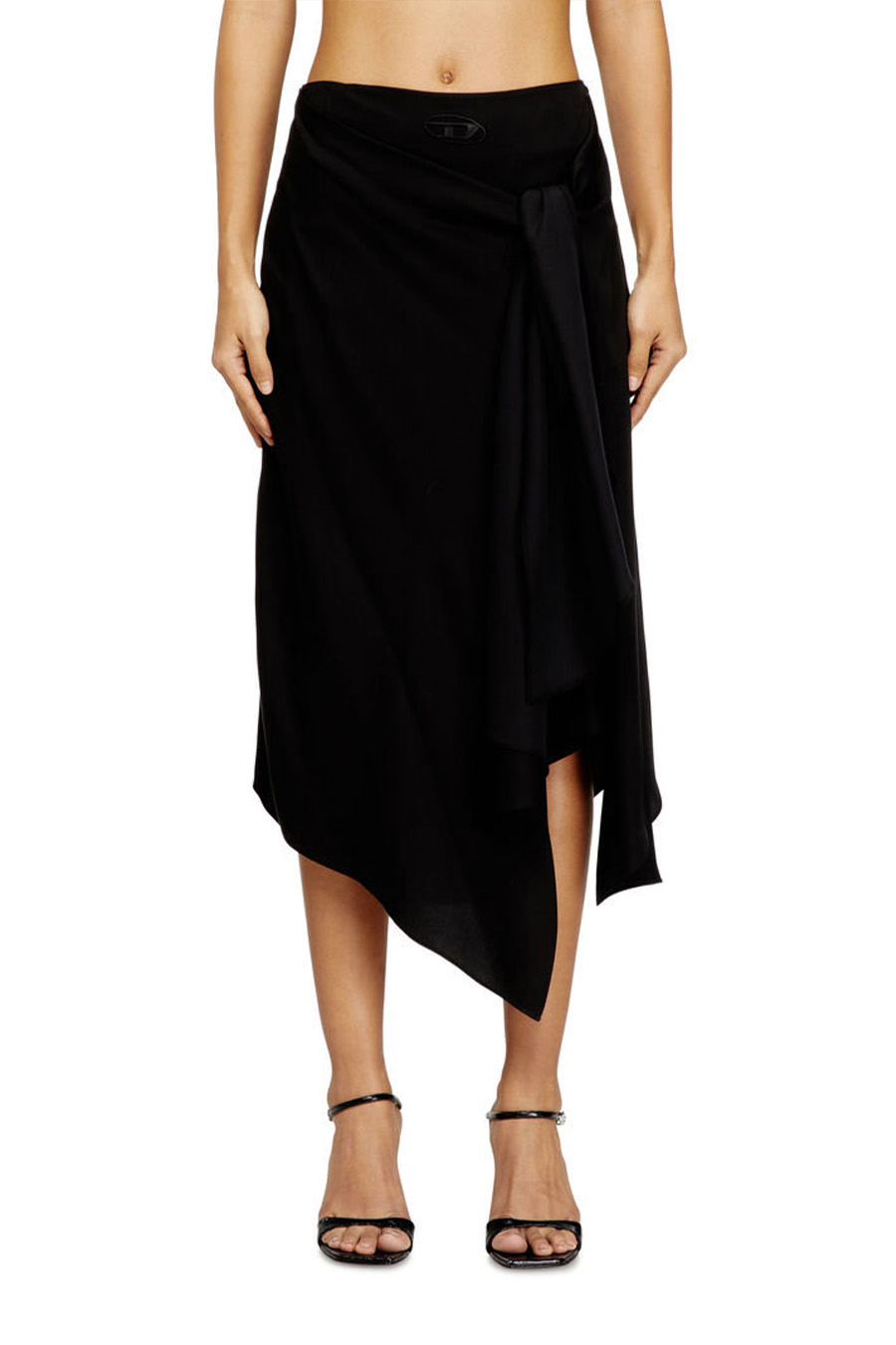 Dieseò midi skirt made from cupro and Lyocell for a fluid, lightweight effect. Its asymmetrical design with a knotted detail at the front creates a dynamic, feminine silhouette, defined by refined details such as the embroidered Oval D logo.