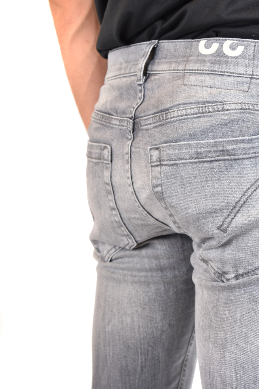 George grey stretch jeans from Dondup featuring belt loops, five pockets as design, front button fastening, rear logo applied, rips on the front, skinny fit