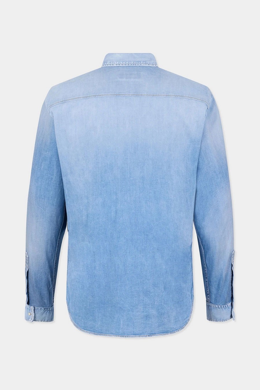 Light Wash Canadian Vintage Shirt made from light wash stretch cotton denim, featuring a straight fit with geometric chest pockets and classic tobacco-coloured stitching.