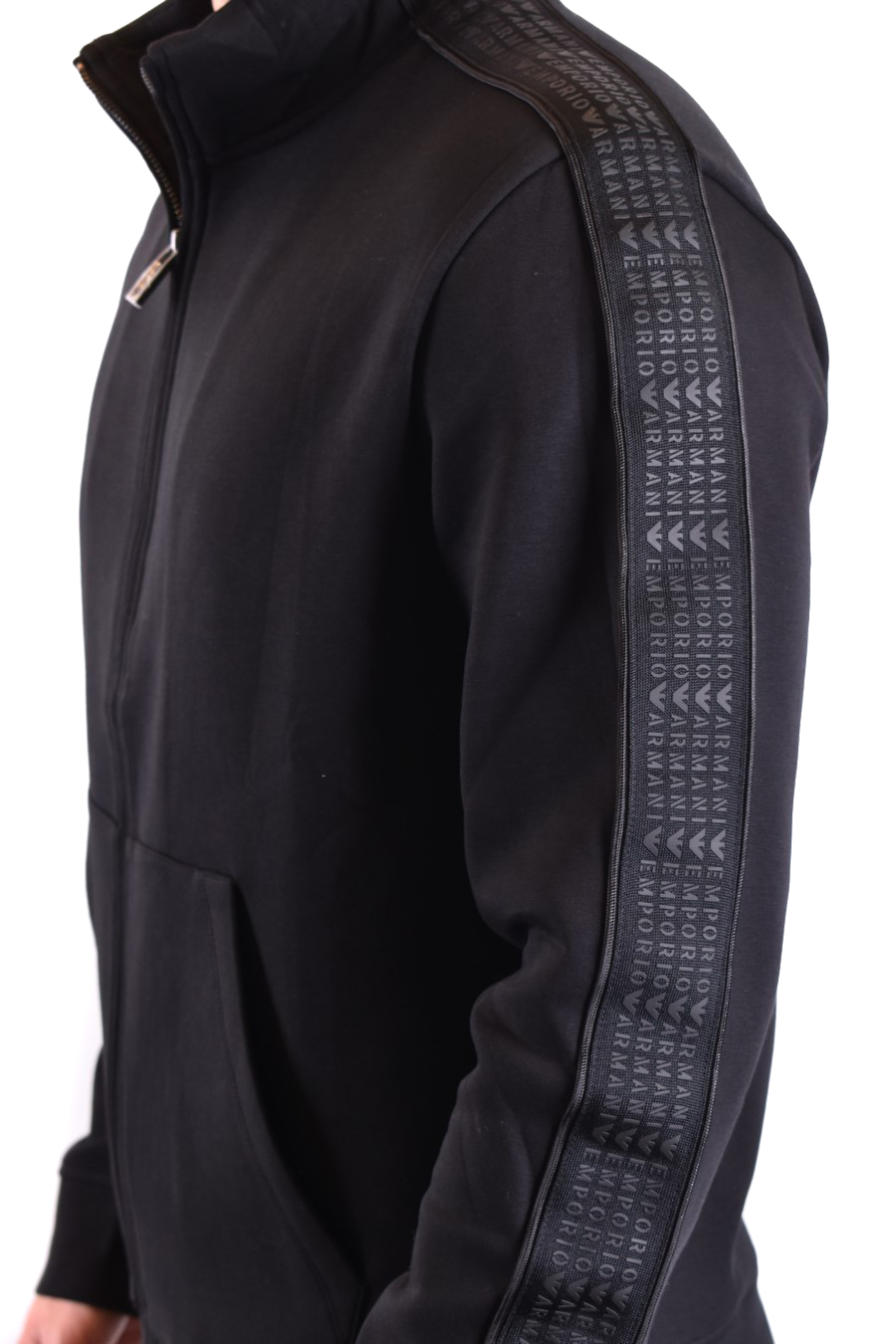 black sweatshirt from Emporio Armani featuring front zip fastening, long sleeves, logo applied on the side