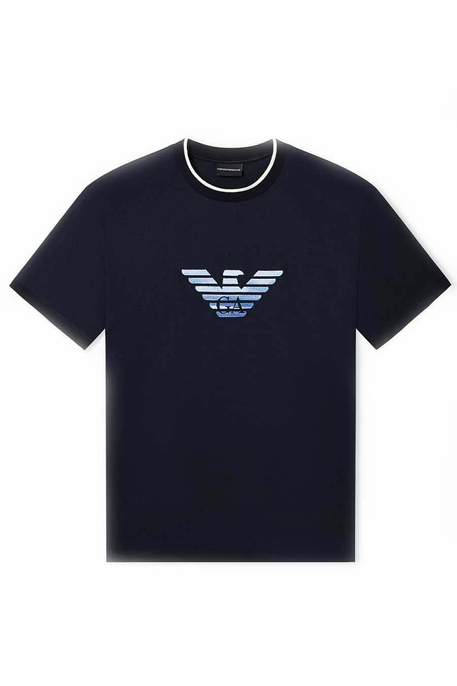 Slim-fit T-shirt in lyocell blend jersey with Emporio Armani eagle embroidery in a dégradé effect.