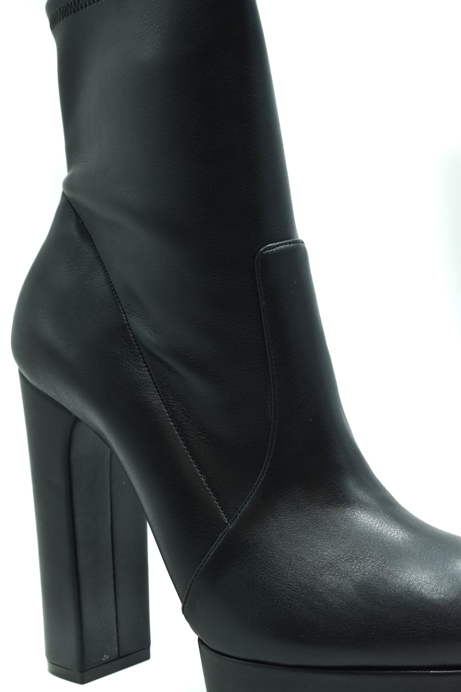black platform boots from Giuseppe Zanotti featuring faux leather, smooth grain, square toe, side zip fastening, high block heel, platform sole