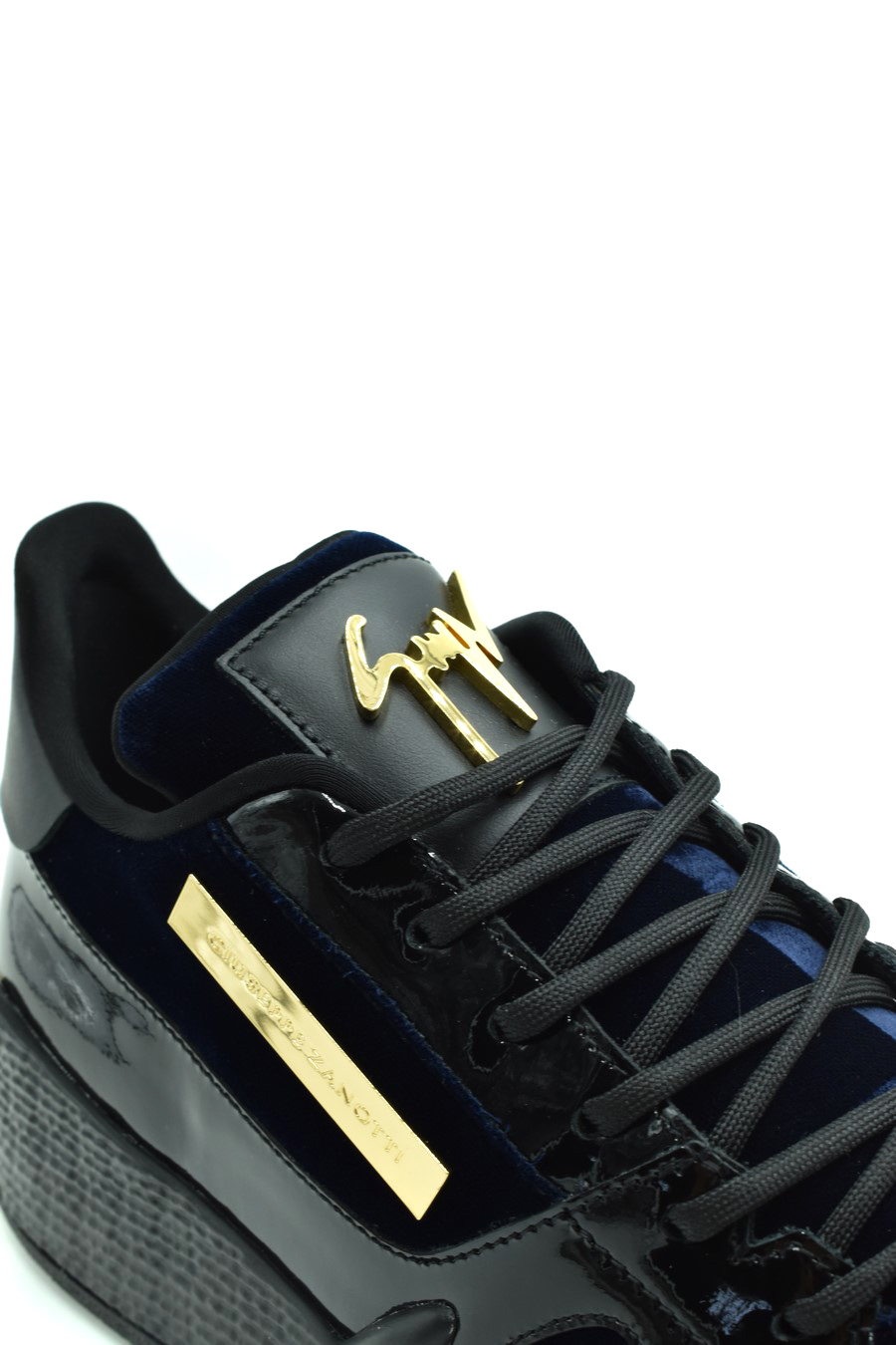 Talon, low sneakers from Giuseppe Zanotti featuring technical texture, lace-up, round toe, gold tone signature and logo label side, rubber sole with gold spoiler