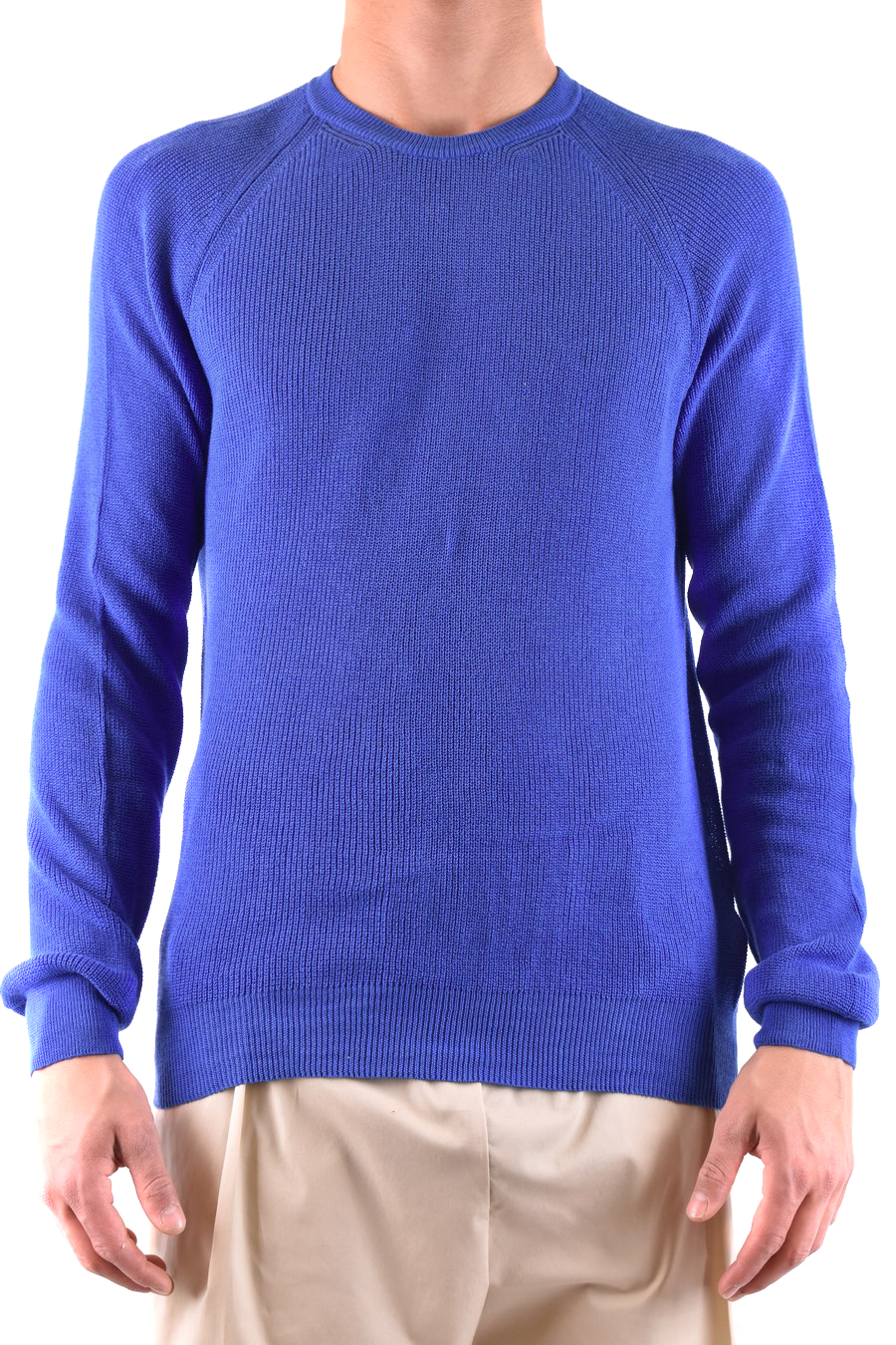 bluette cotton crew-neck jumper from Laneus featuring round neck, long sleeves