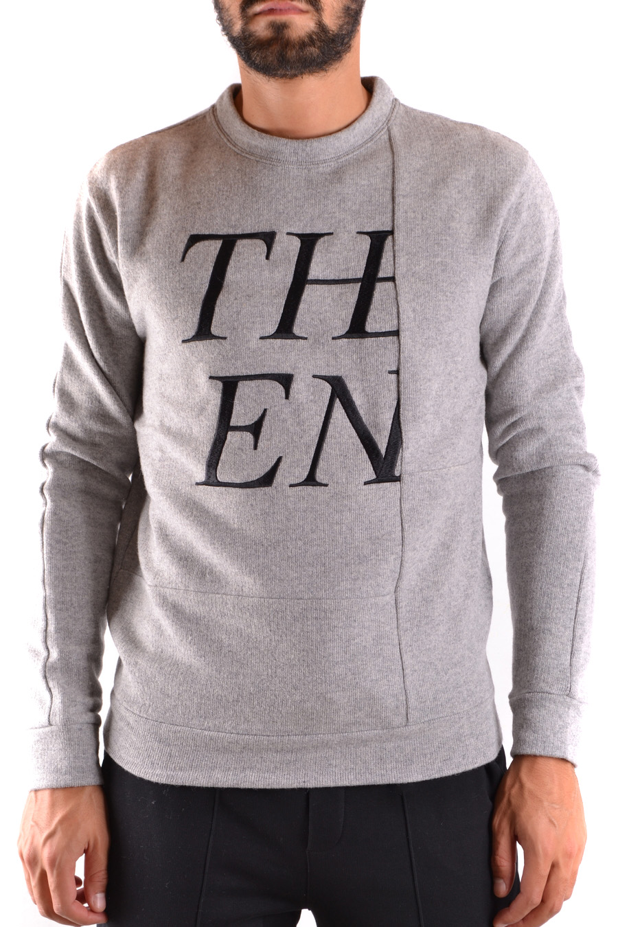 knitted round neck sweater with application in front
