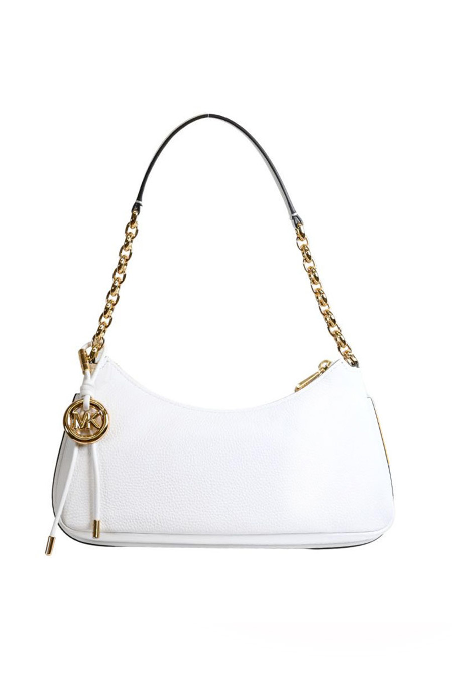 Michael Kors medium Nolita clutch bag in textured leather with chain strap. Featuring a gold chain shoulder strap, textured leather, removable MK Pop charm, back slip pocket and back slip pocket.
