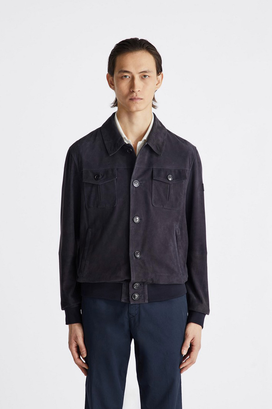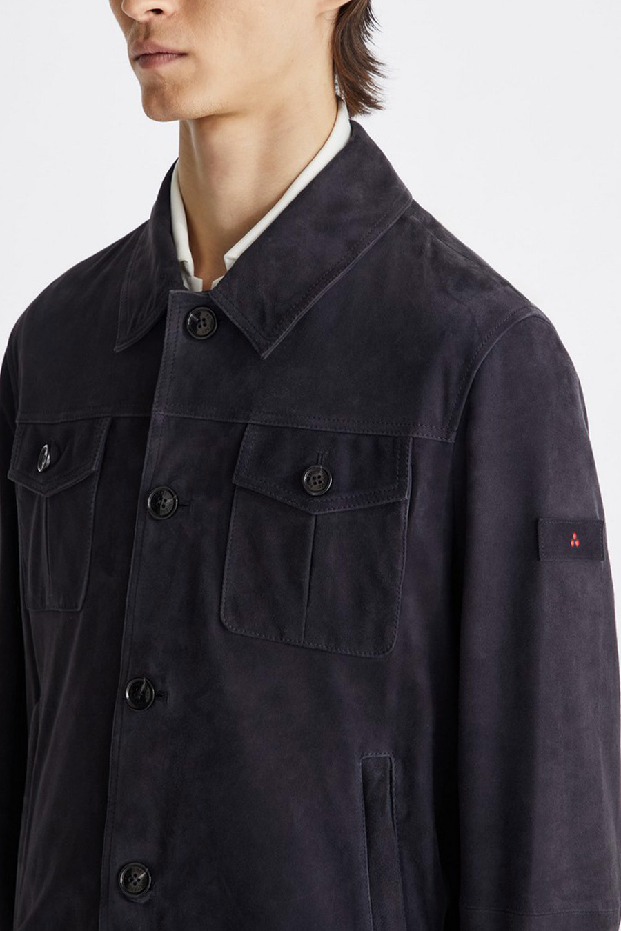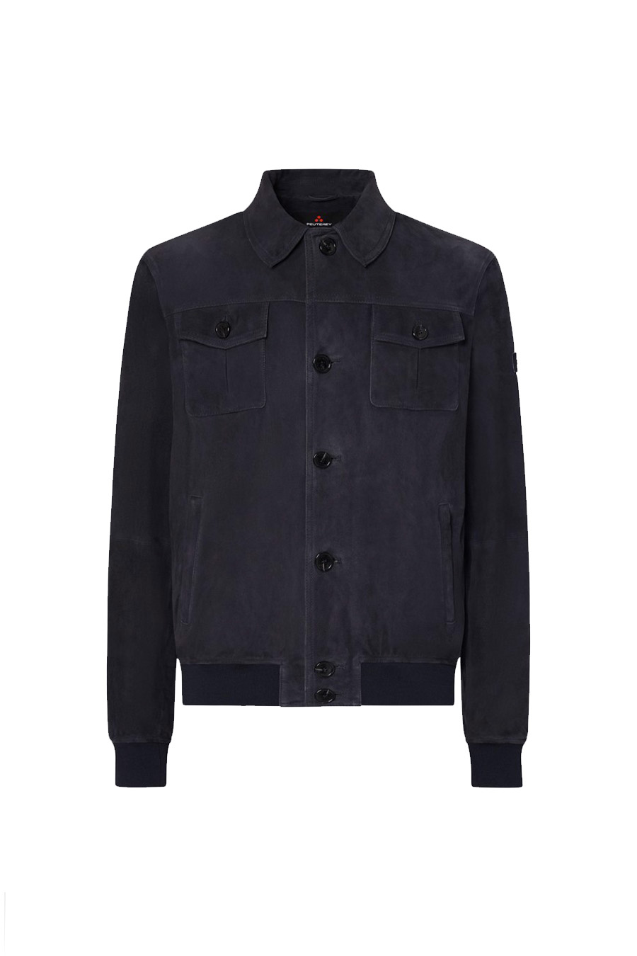 Peuterey suede jacket with horn-effect buttons, featuring a fabric hem and cuffs and a shirt-style collar for a timeless look.