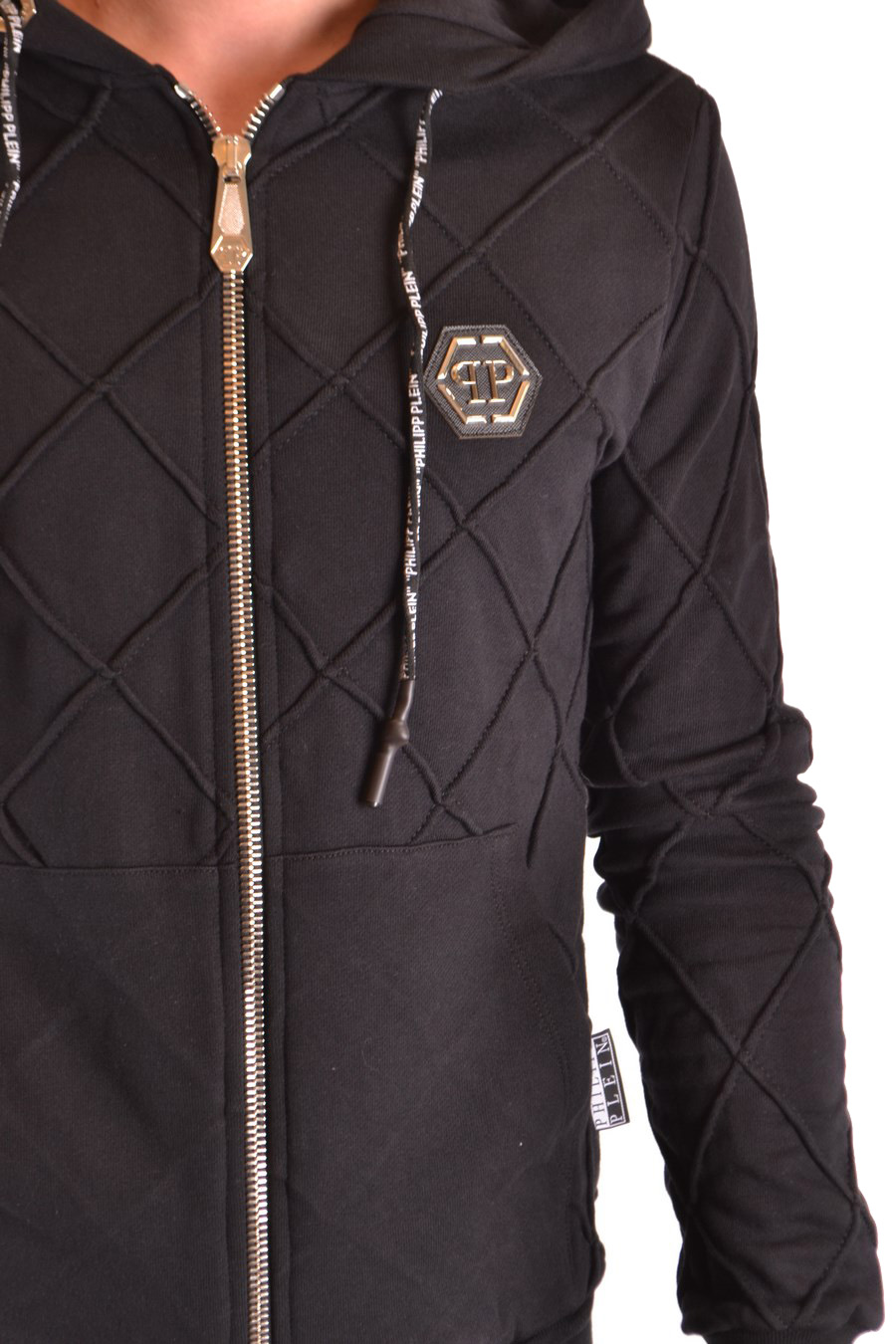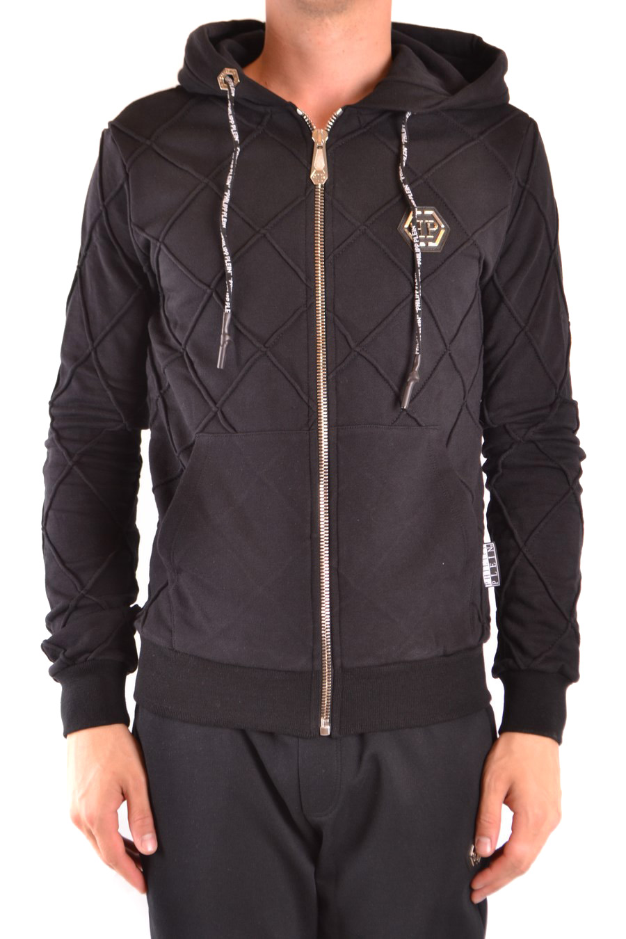 black cotton hoodie from philipp plein featuring hood, drawstring fastening, exagonal logo plaque, kangoroo pockets, full zip fastening, ribbed cuffs and hem