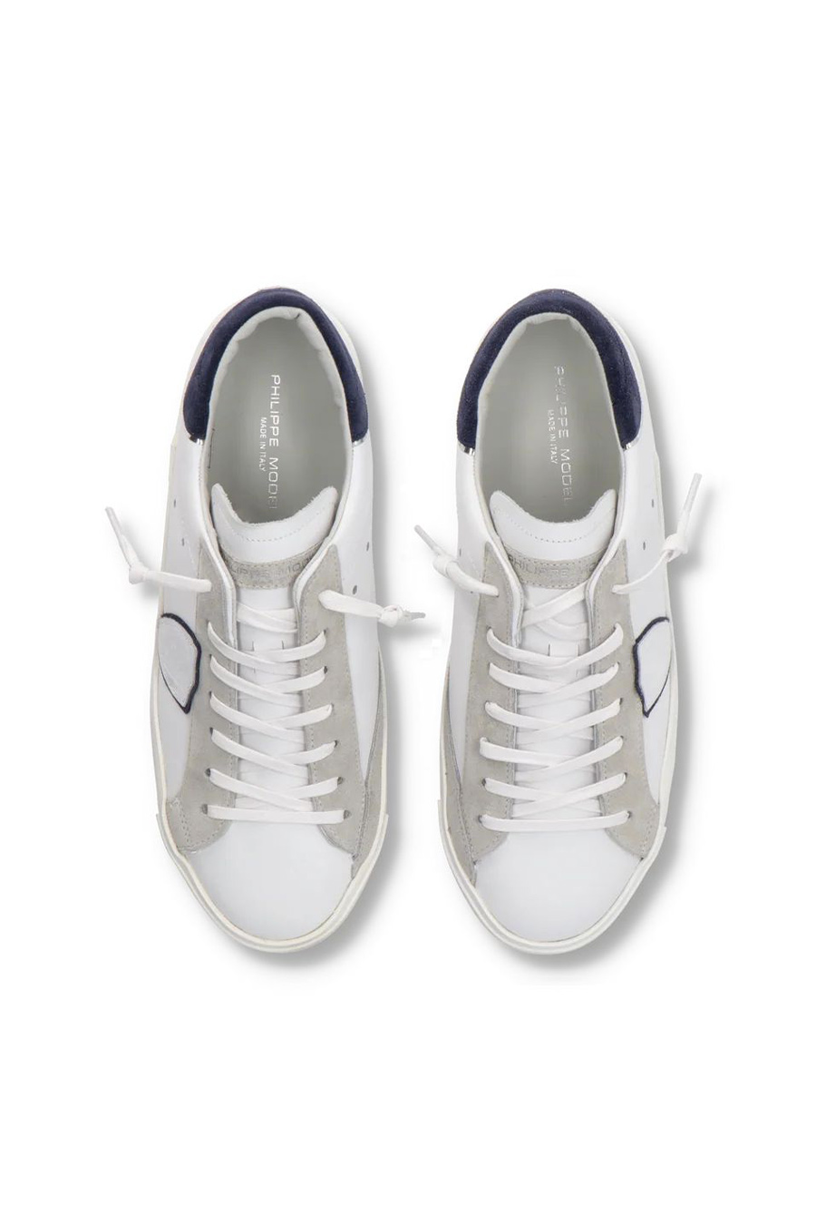 Philippe Model Prsx low-top leather trainers Prsx low-top trainers made from suede and smooth calfskin leather with a used effect, featuring a shield and spoiler with contrasting trim.