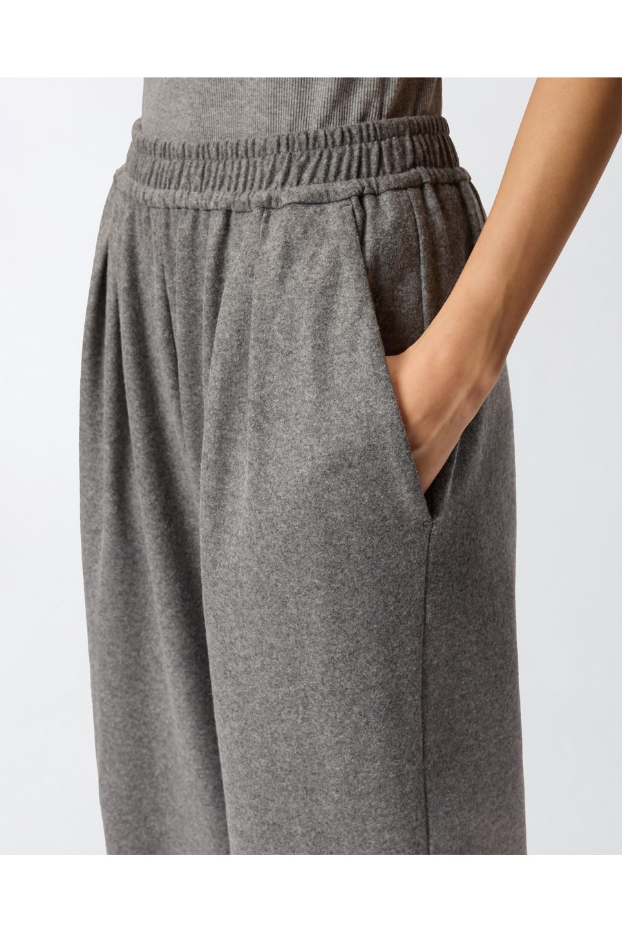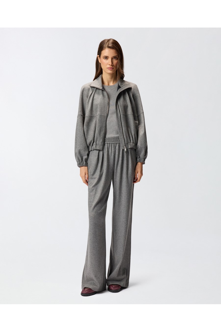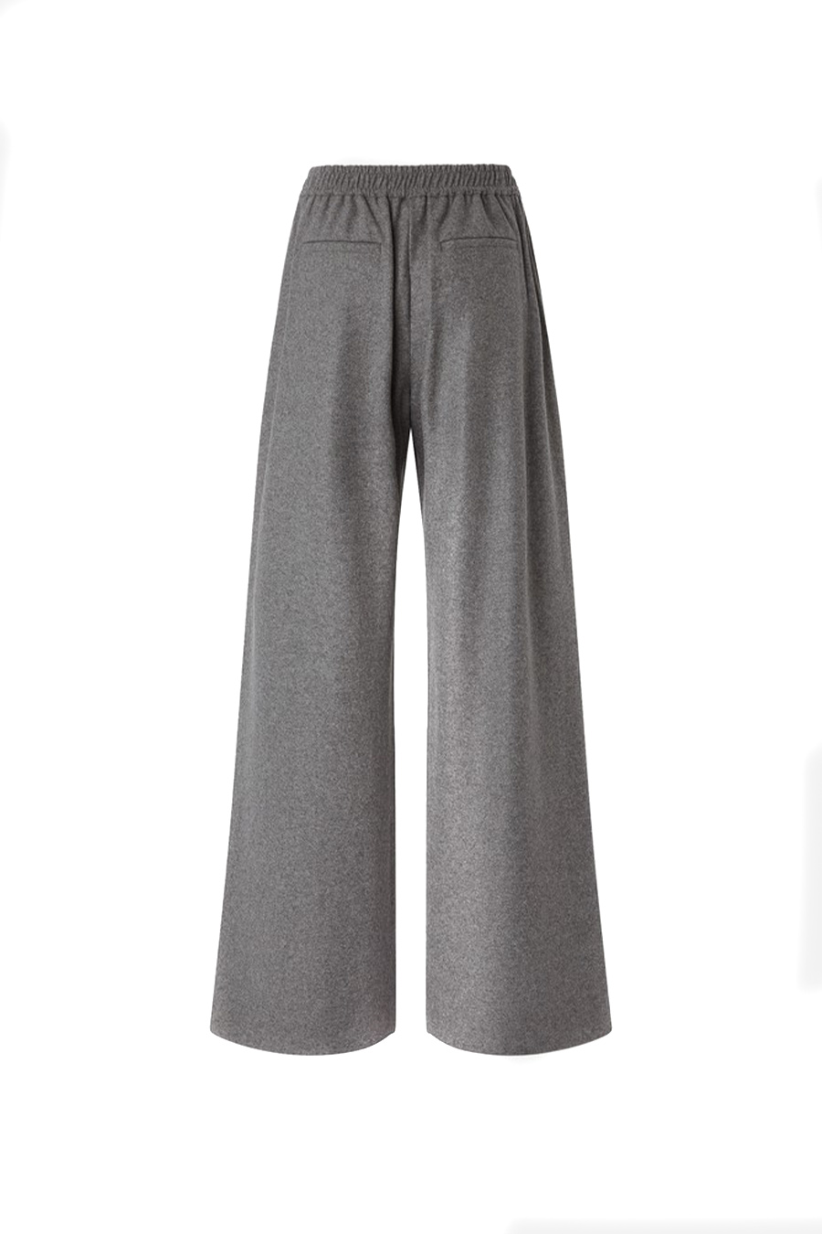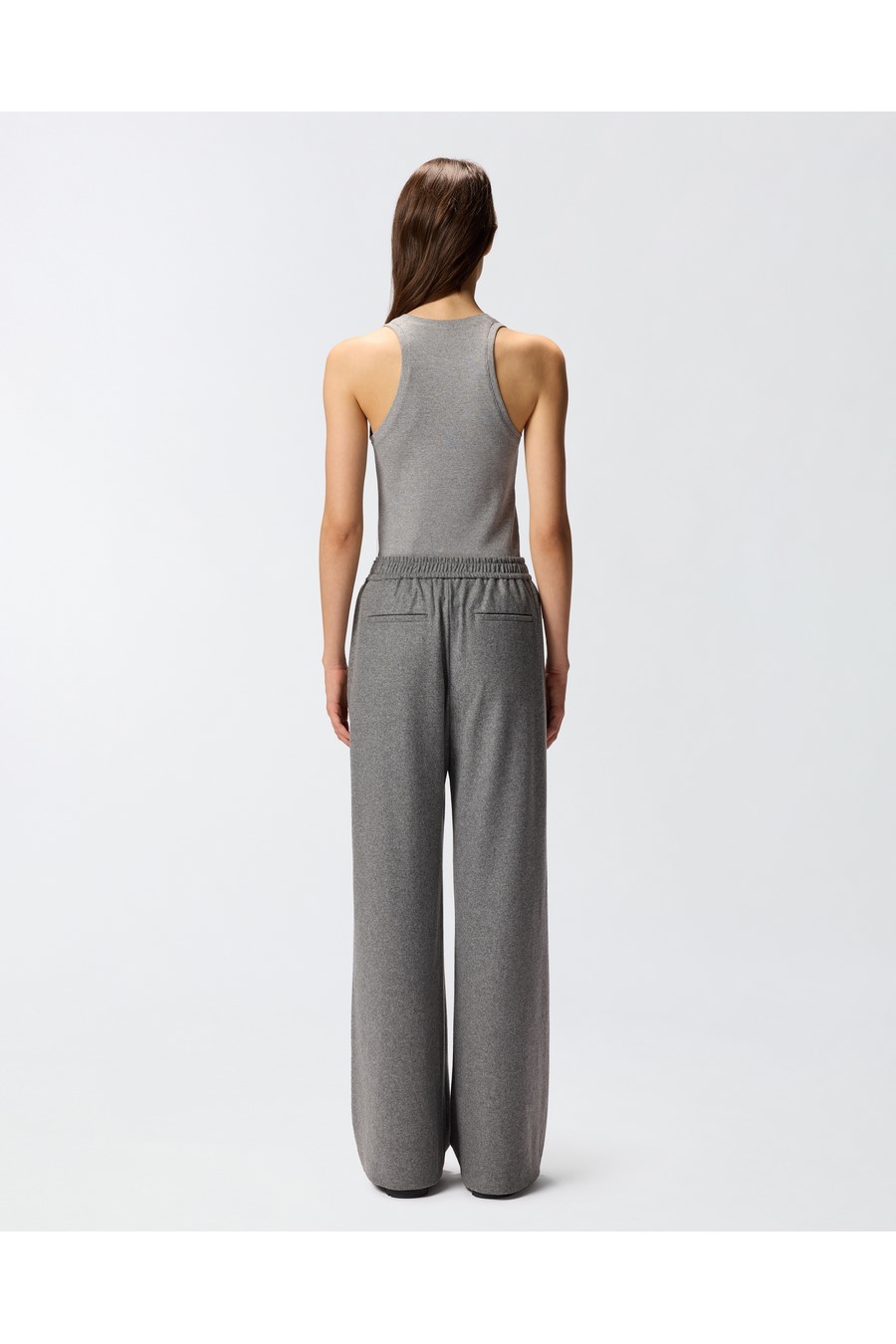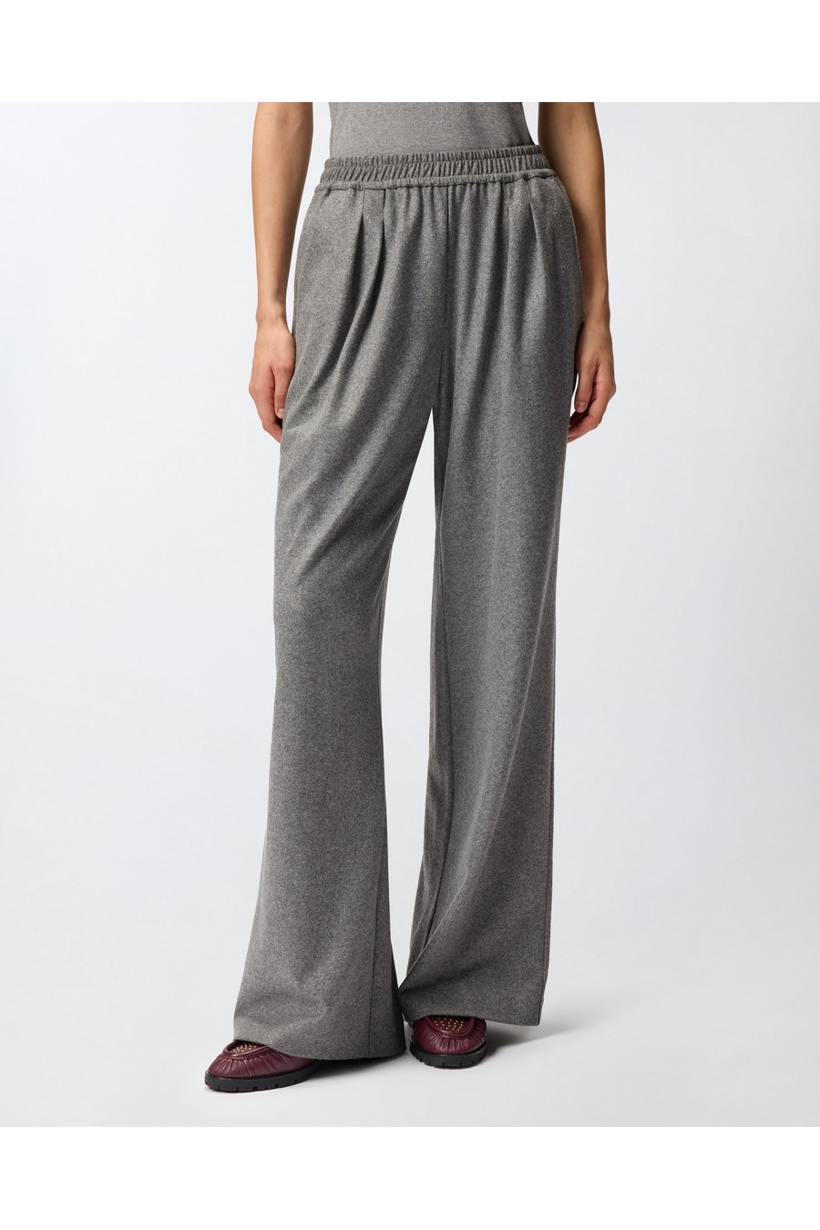 Pinko wide-leg trousers made of yarn-dyed wool blend jersey flannel, with flared leg at the bottom.