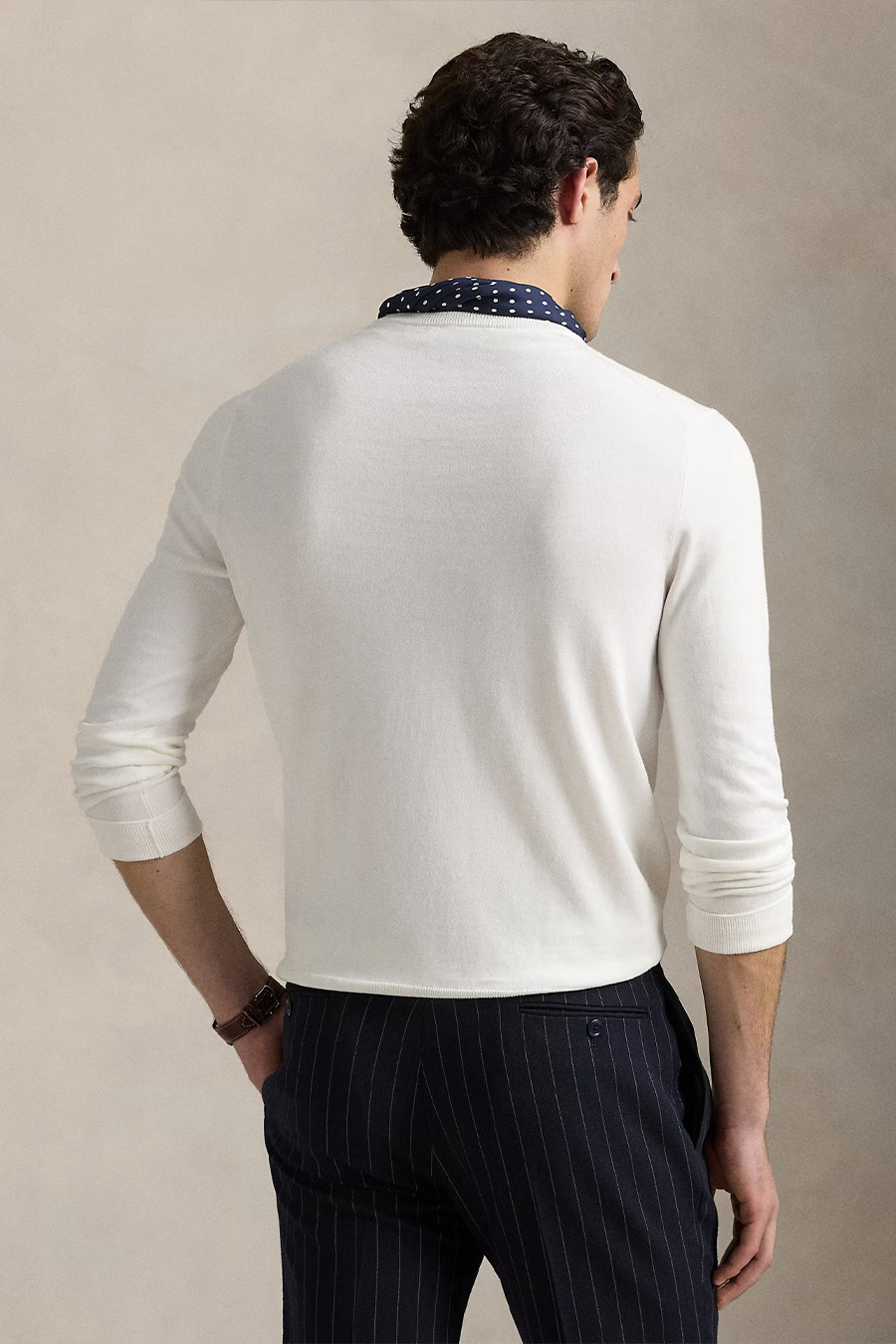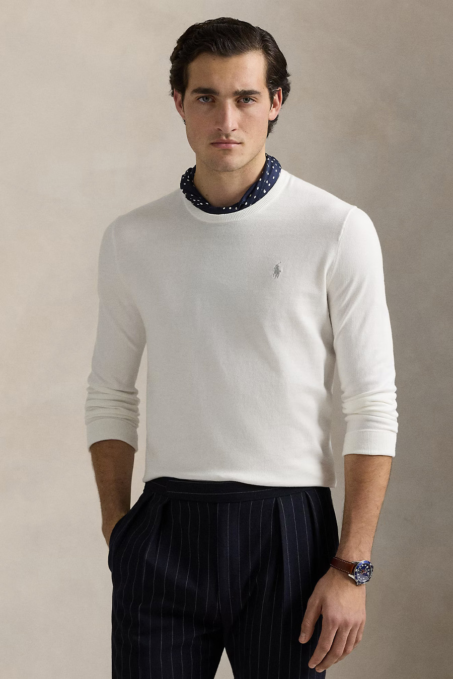 Slim-fit textured knit Polo Ralph Lauren crew neck, long sleeves with ribbed cuffs, ribbed hem, embroidered pony on the left side of the chest.