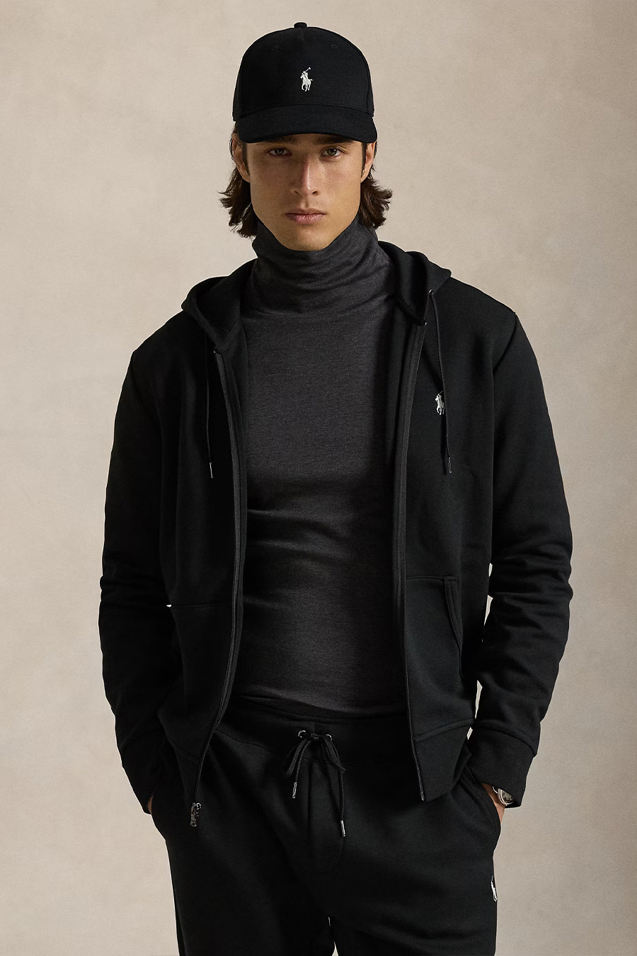 Polo Ralph Lauren hooded sweatshirt with drawstring, zip fastening, long sleeves with ribbed cuffs, separate kangaroo pockets, ribbed hem.