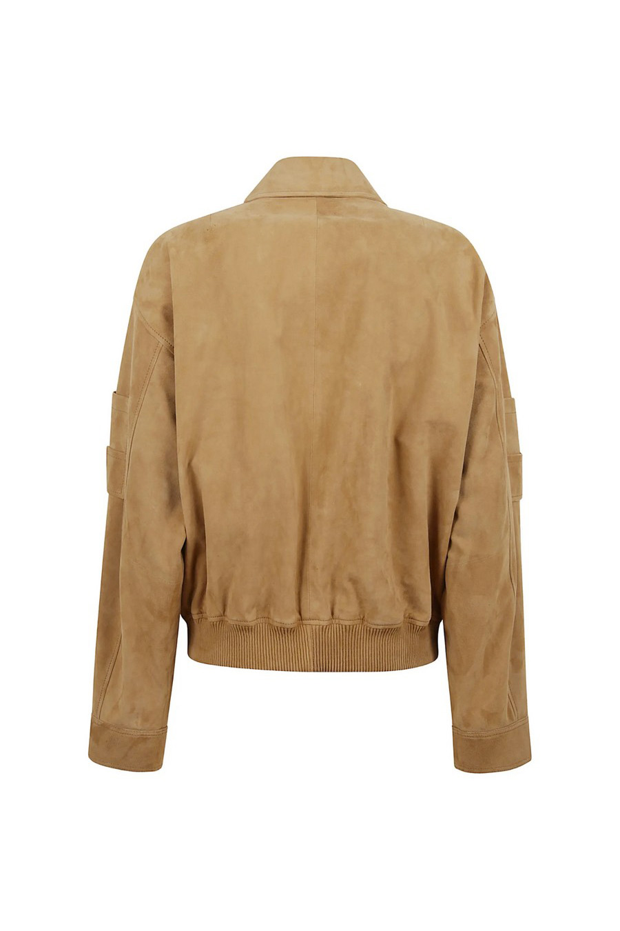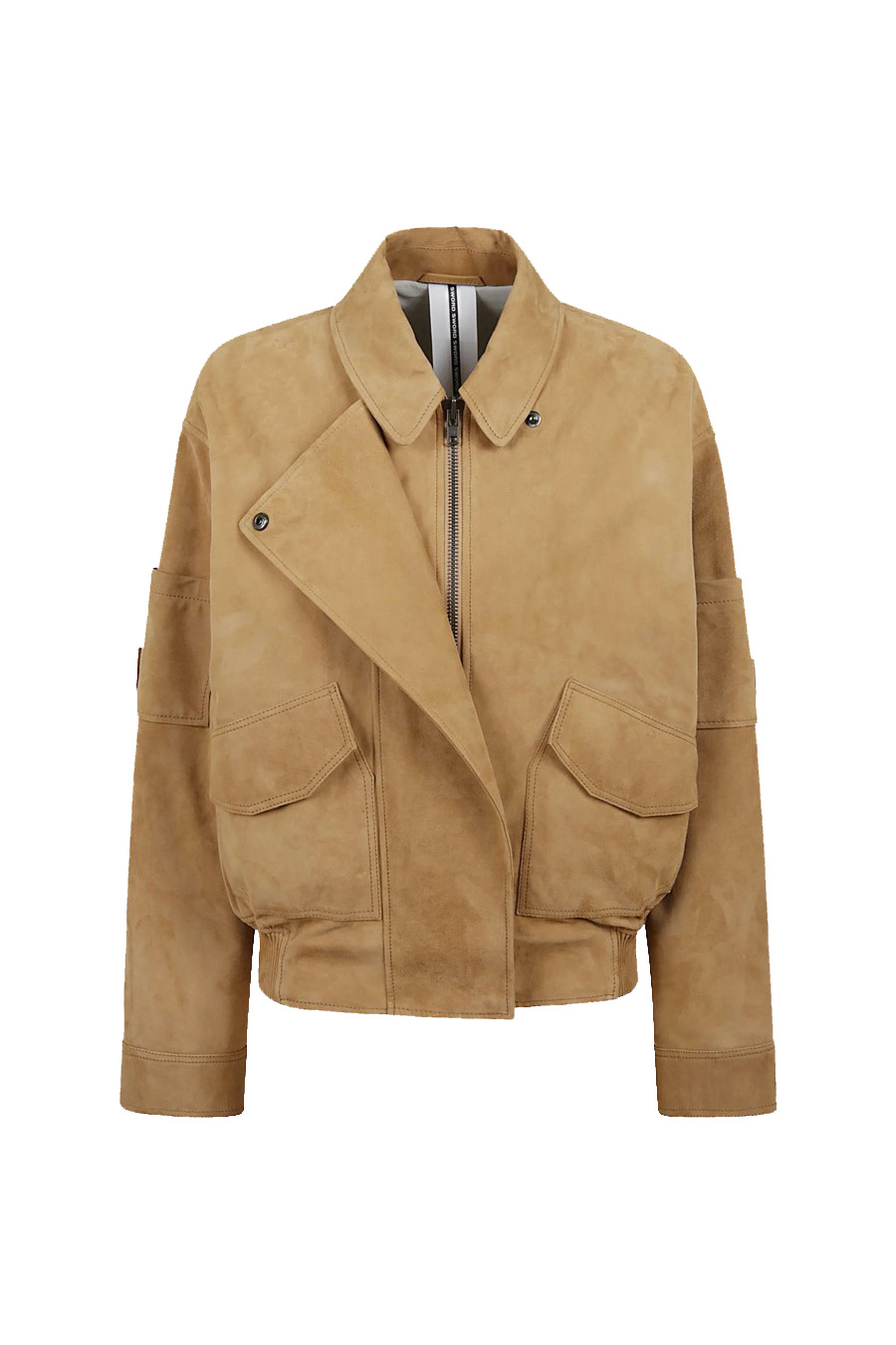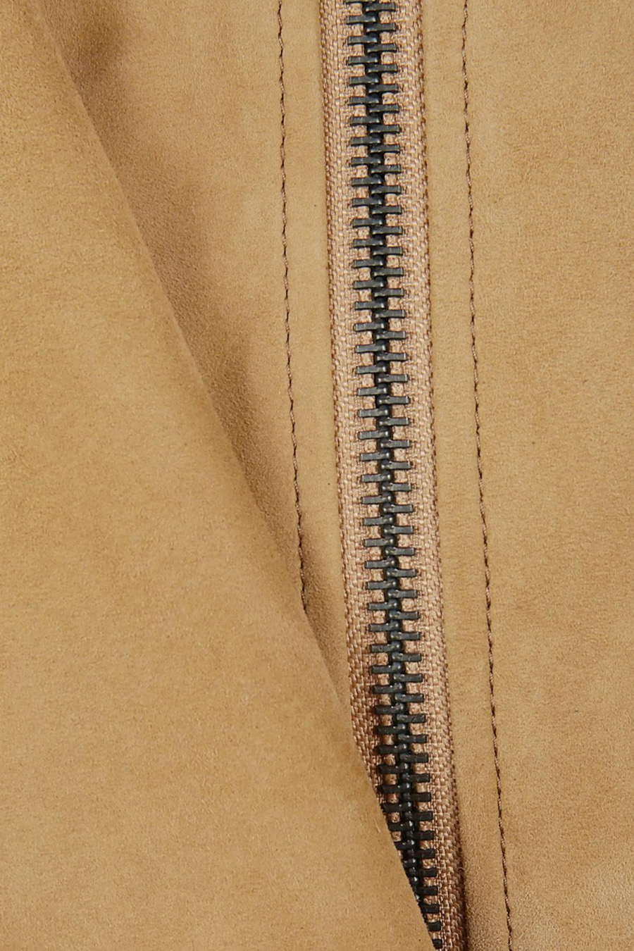 S.W.O.R.D. suede jacket with zip fastening, flap pockets, pointed collar and press stud fastening.