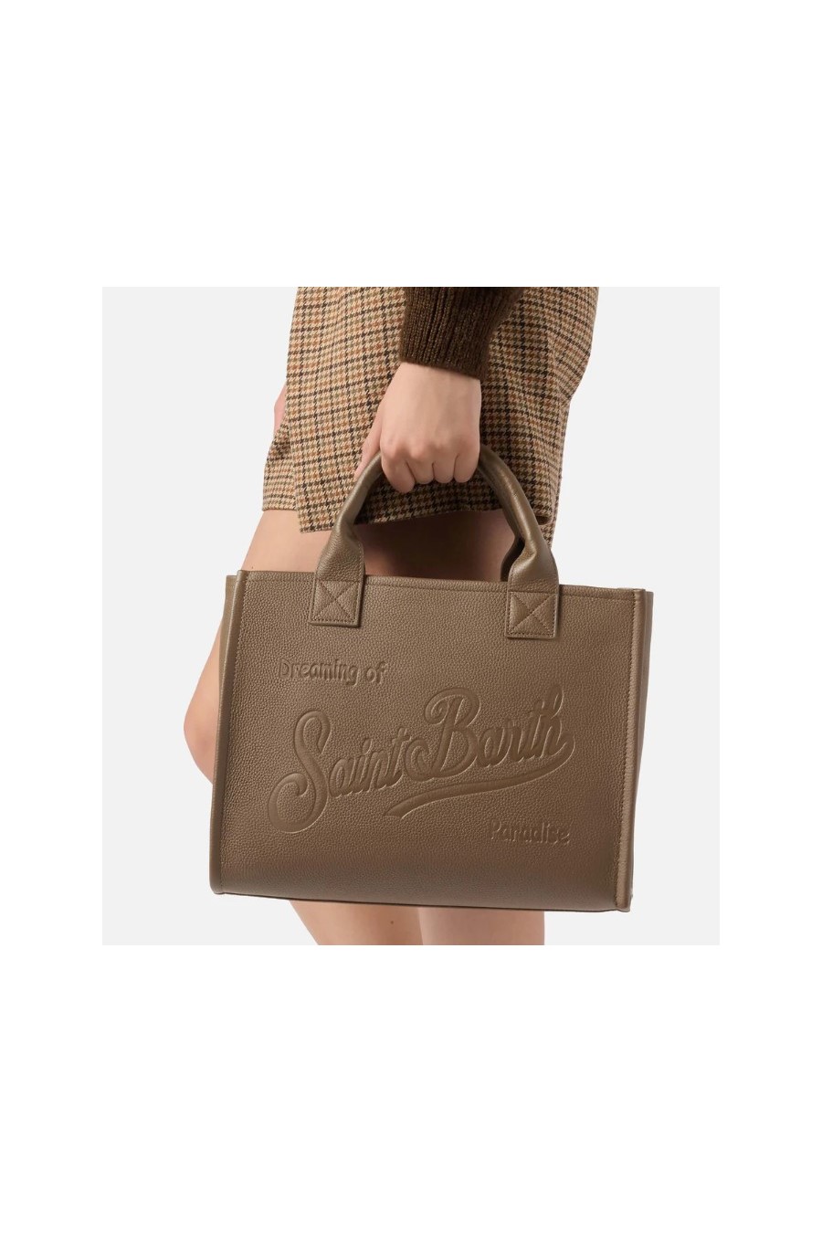 Saint Barth Vanity Bag Large shoulder bag in brown textured leather.