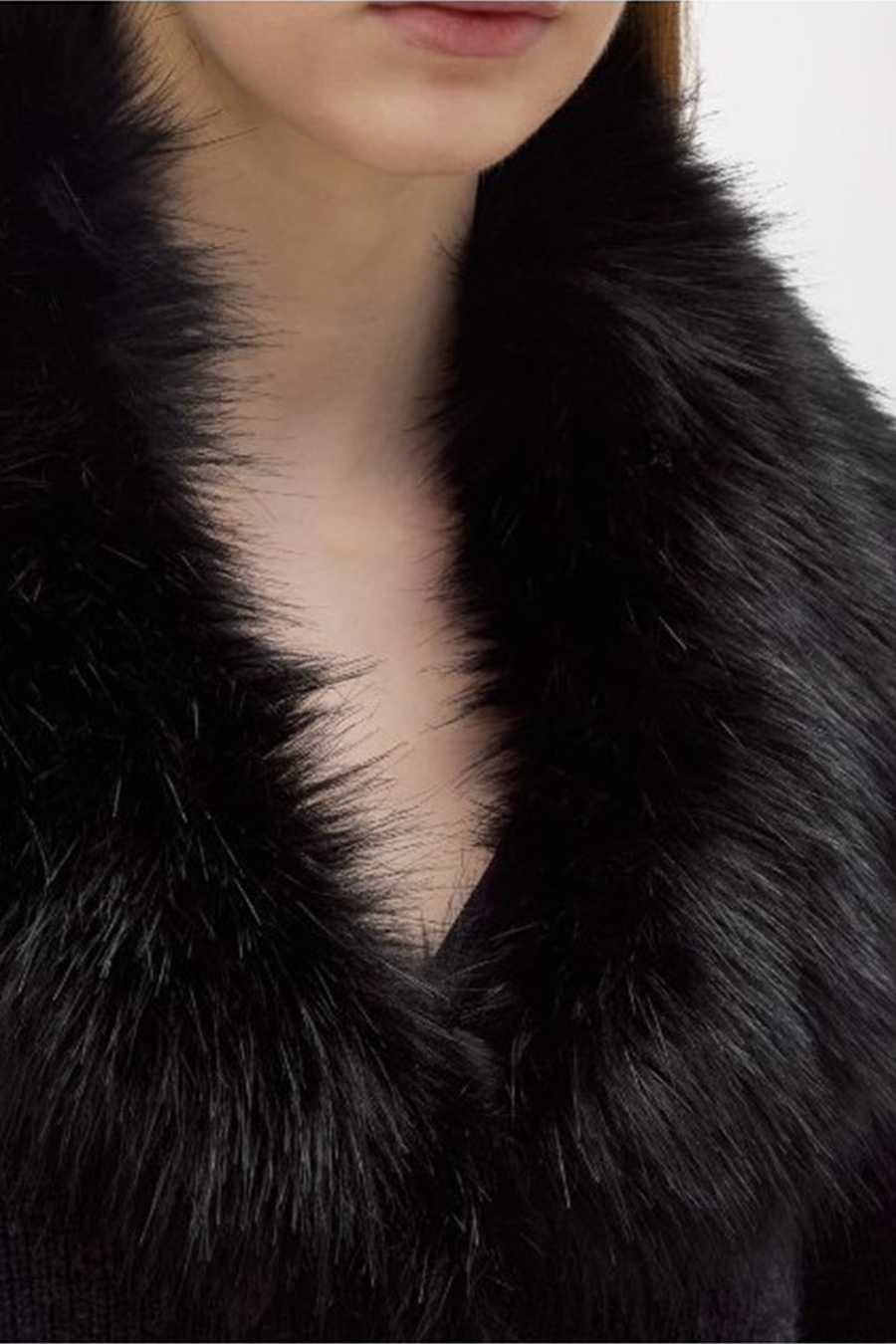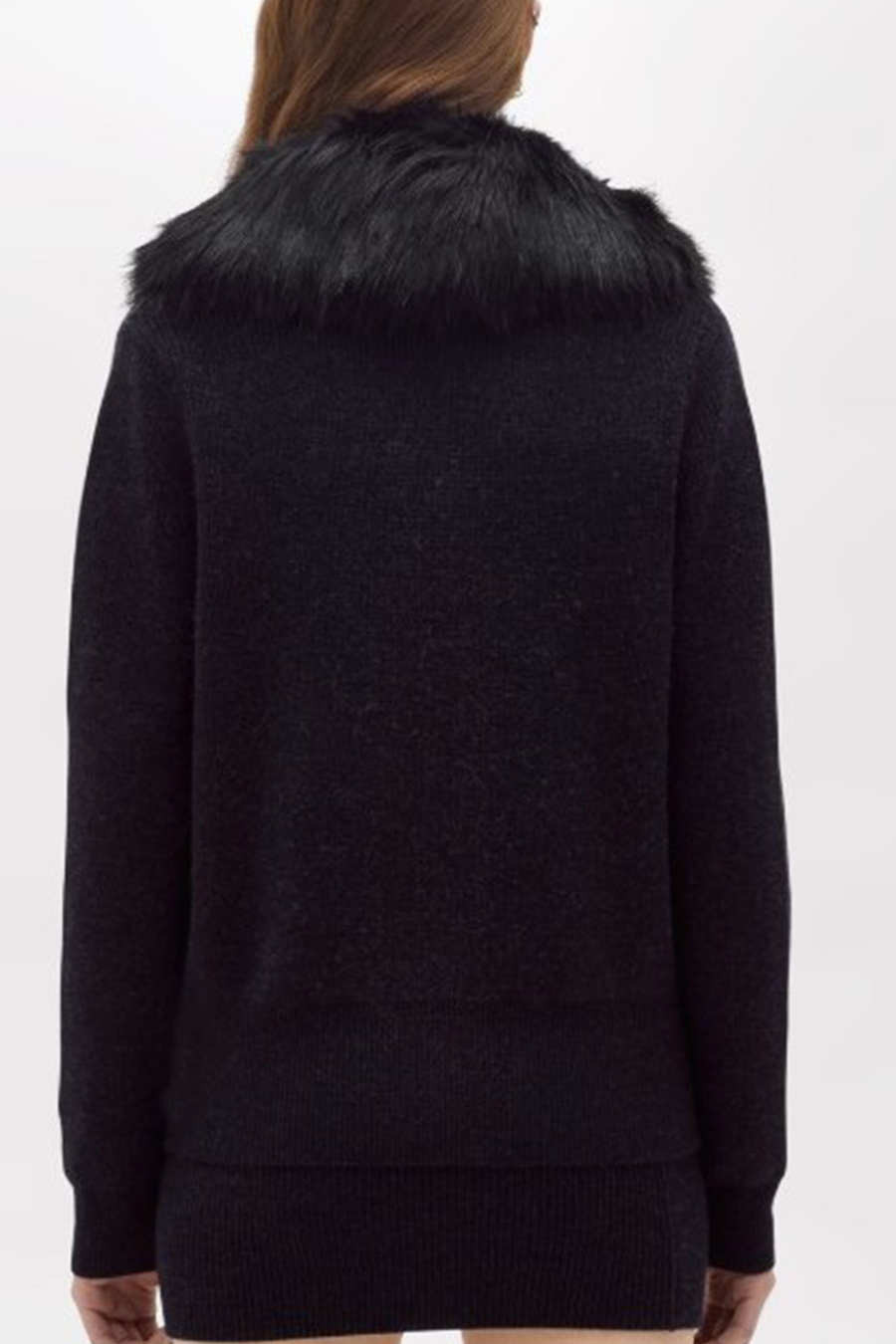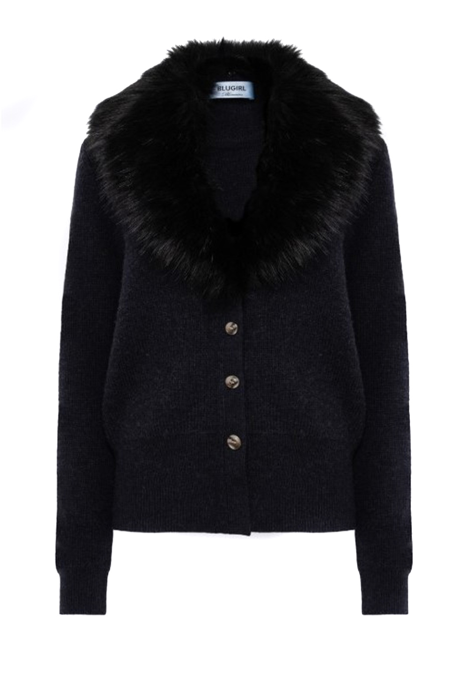 Blugirl cardigan in pure English ribbed wool with removable faux fur collar. It has horn-effect button fastening, V-neckline, long sleeves and a regular fit.