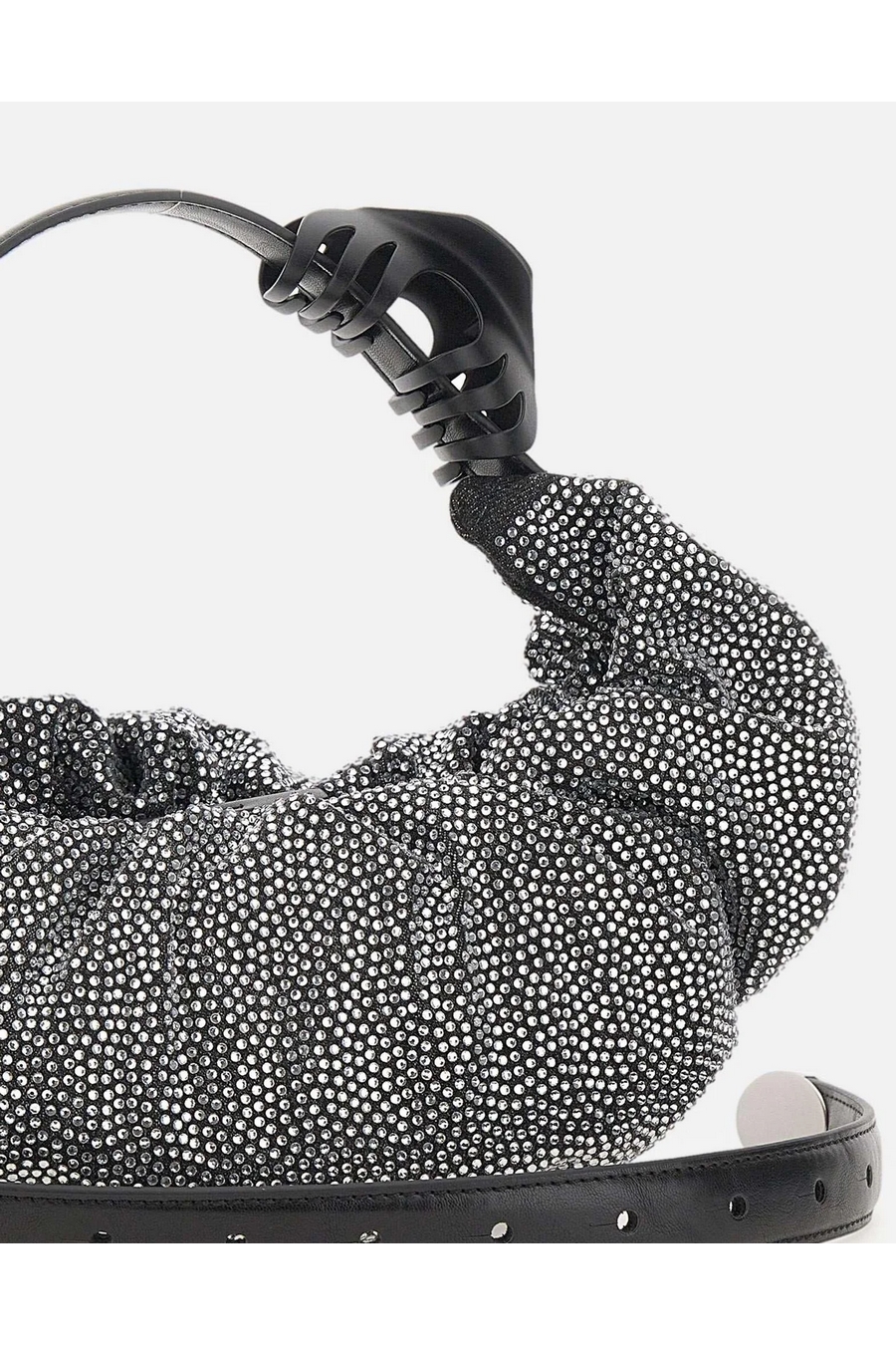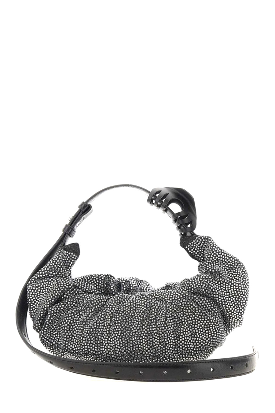 grab-d hobo s Diesel small bag with a gathered silhouette in black-wash denim decorated with reflective crystals.