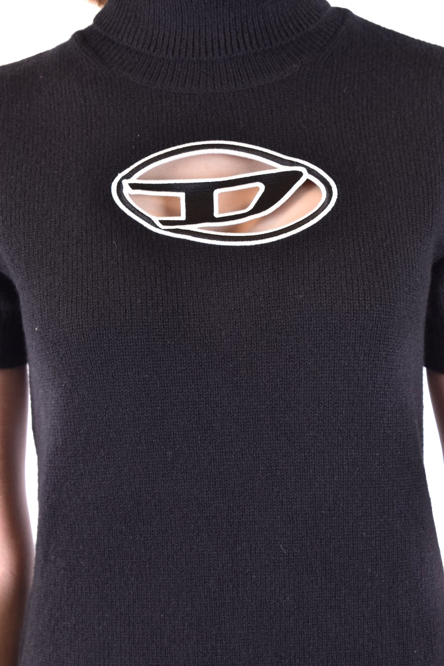 black wool cashmere blended midi dress featuring short sleeves, high neck, central cut with logo applied