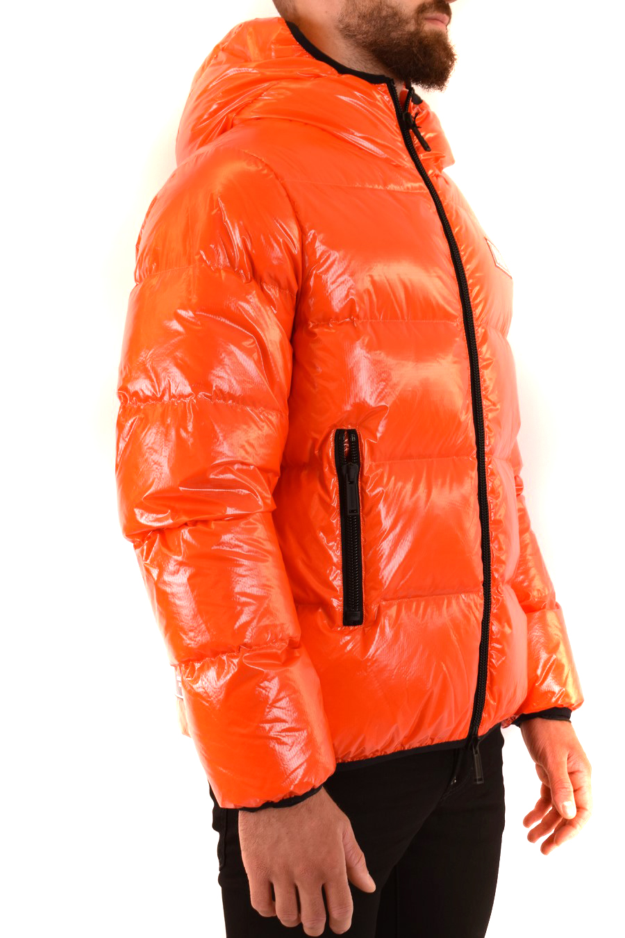 orange shine shell padded jacket from Dsquared2 featuring classic hood, logo applied at the chest, full central zip fastening, side zip pockets, elasticated cuffs and hem