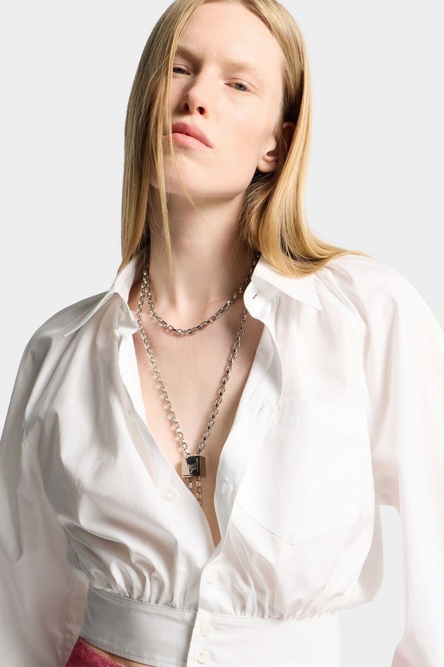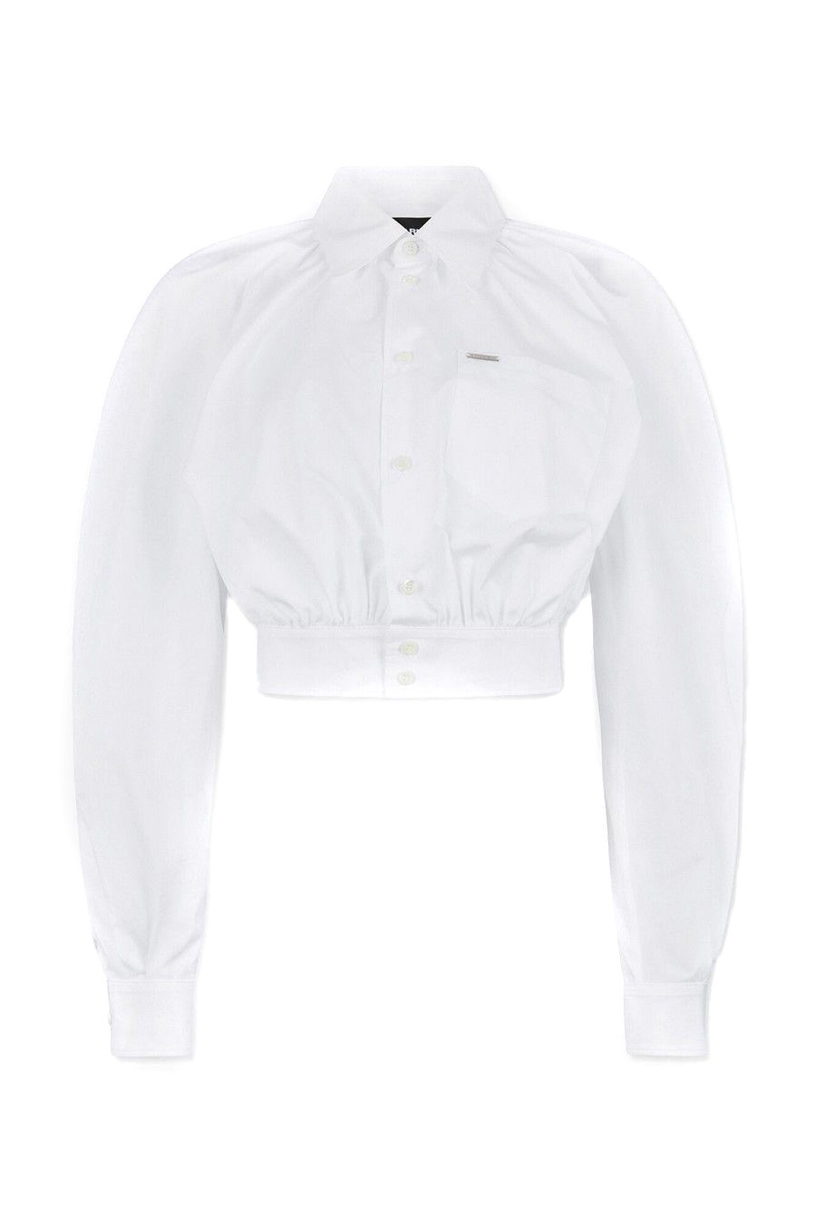 Dsquared2 Baloon Shirt cotton poplin shirt has a cropped cut, voluminous raglan sleeves and a gathered yoke.
