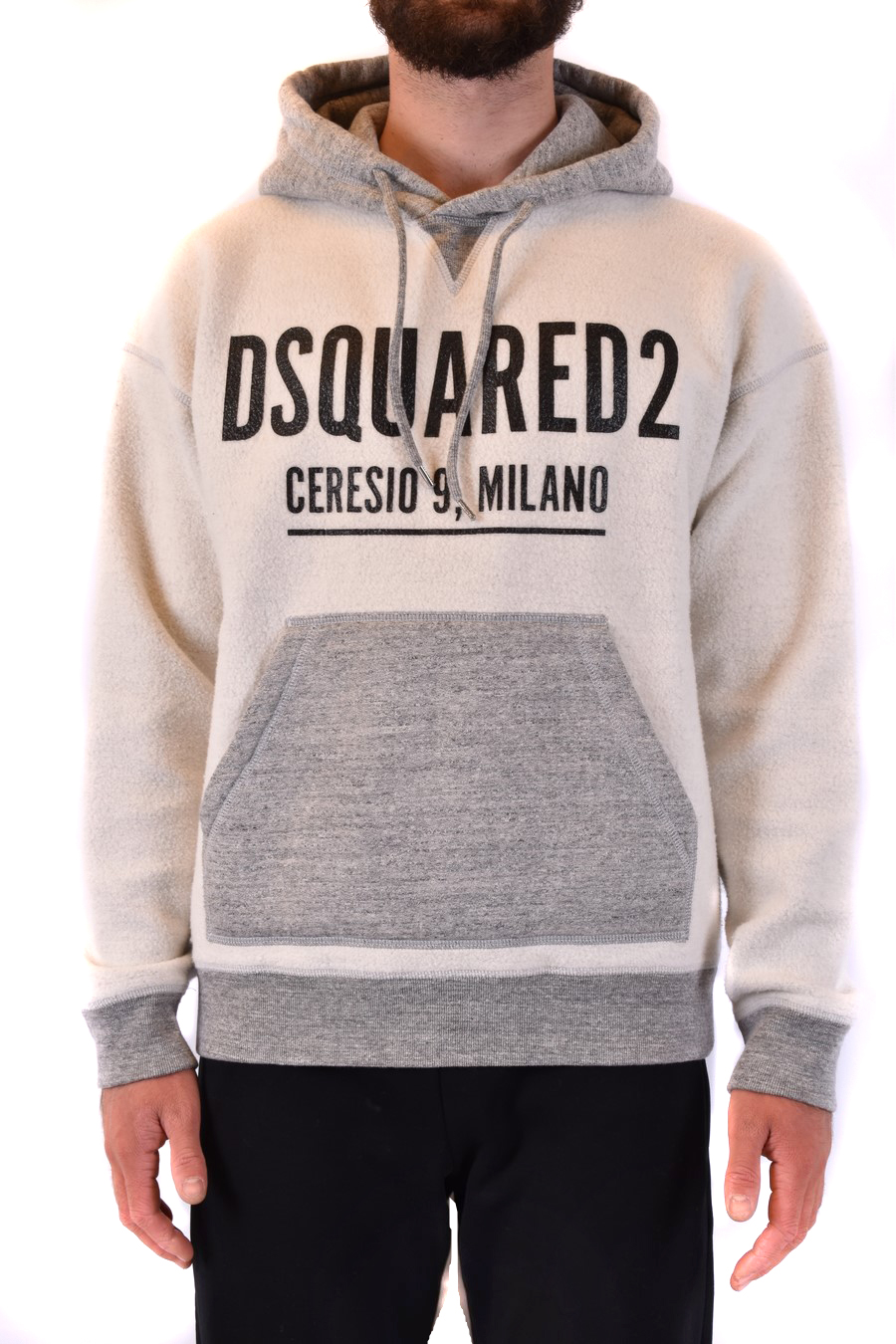 white/grey hoodie from Dsquared2 featuring drowsting hood, front pouch pocket, long sleeves, stright hem