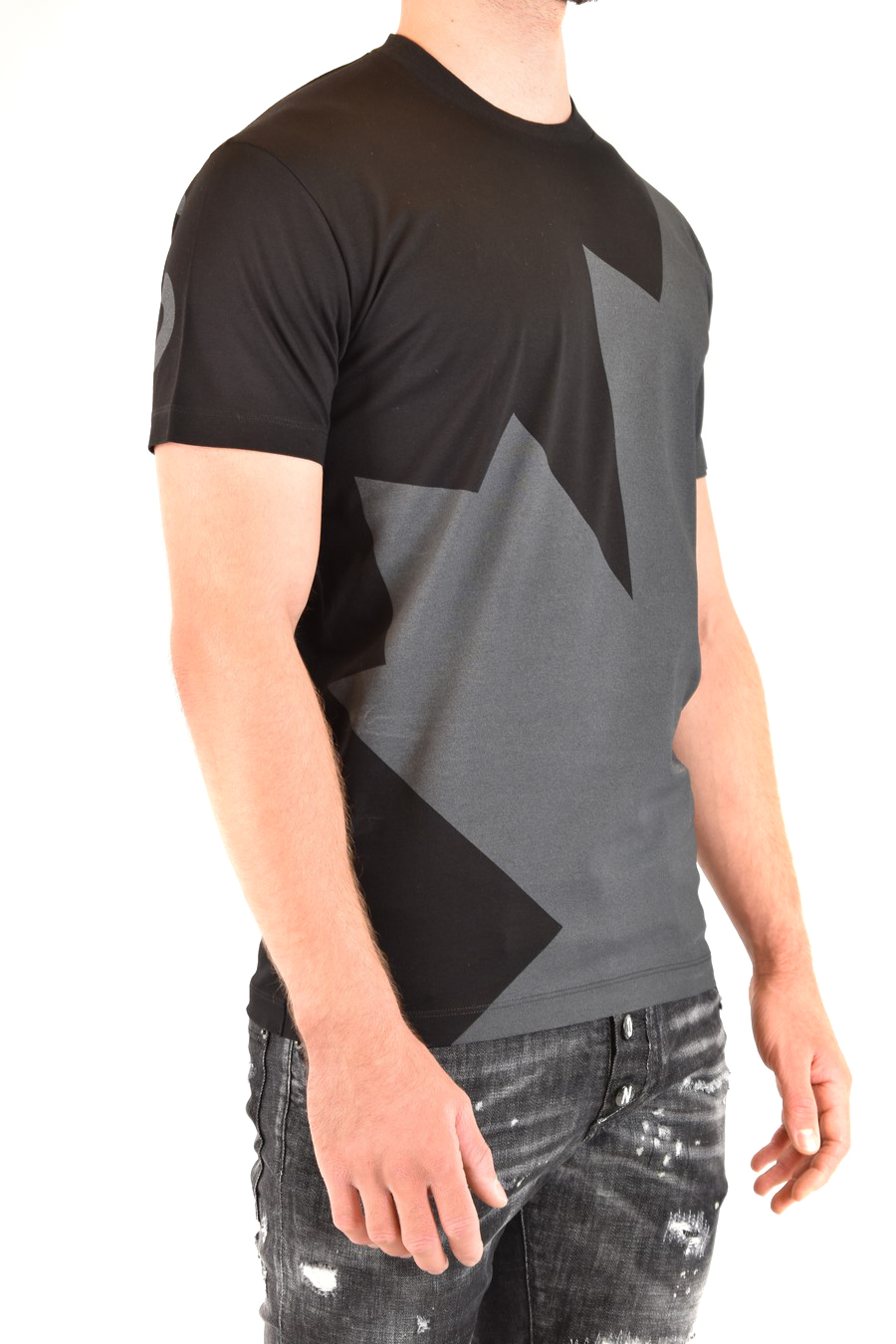 black/grey t-shirt from Dsquared2 featuring round neck, short sleeve, grey logo print on the front and back