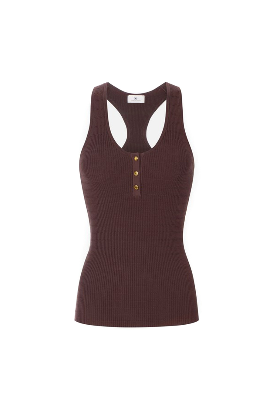 Elisabetta Franchi micro-cable knit top, sleeveless with a crew neck.