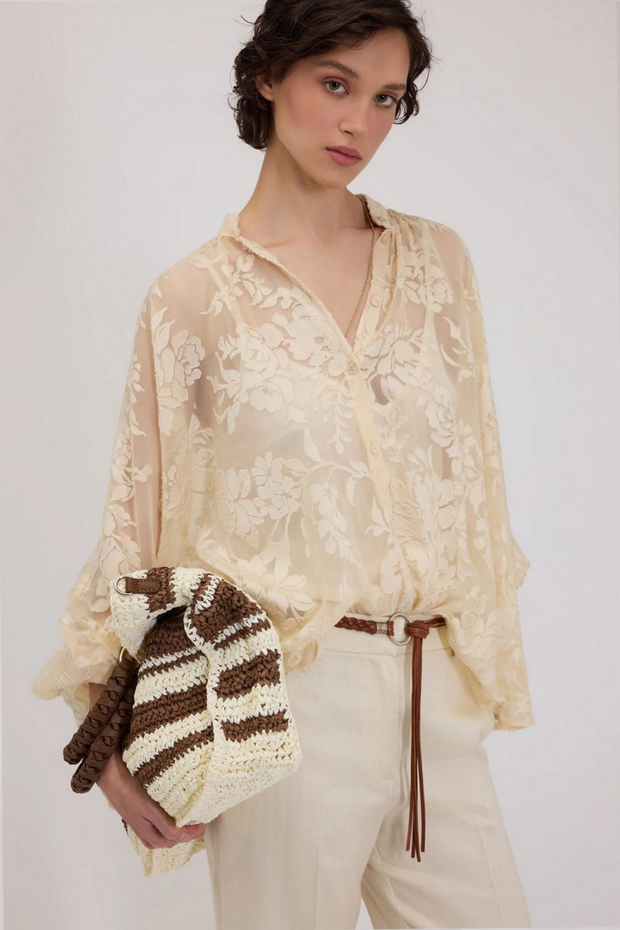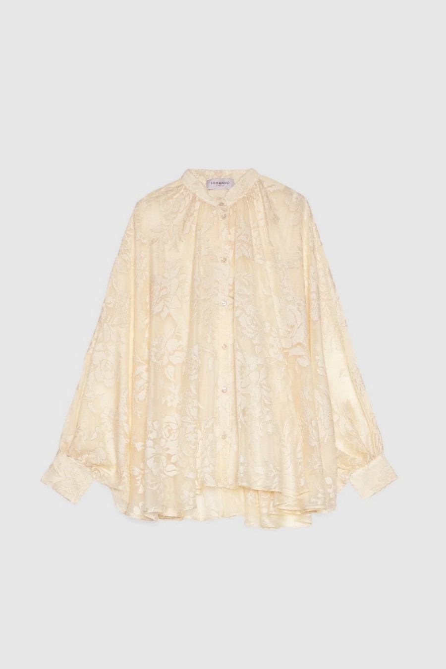 Floral-print devoré satin shirt, loose fit by Ermanno Firenze, designed by Ermanno Scervino, in sheer devoré satin with a floral pattern.