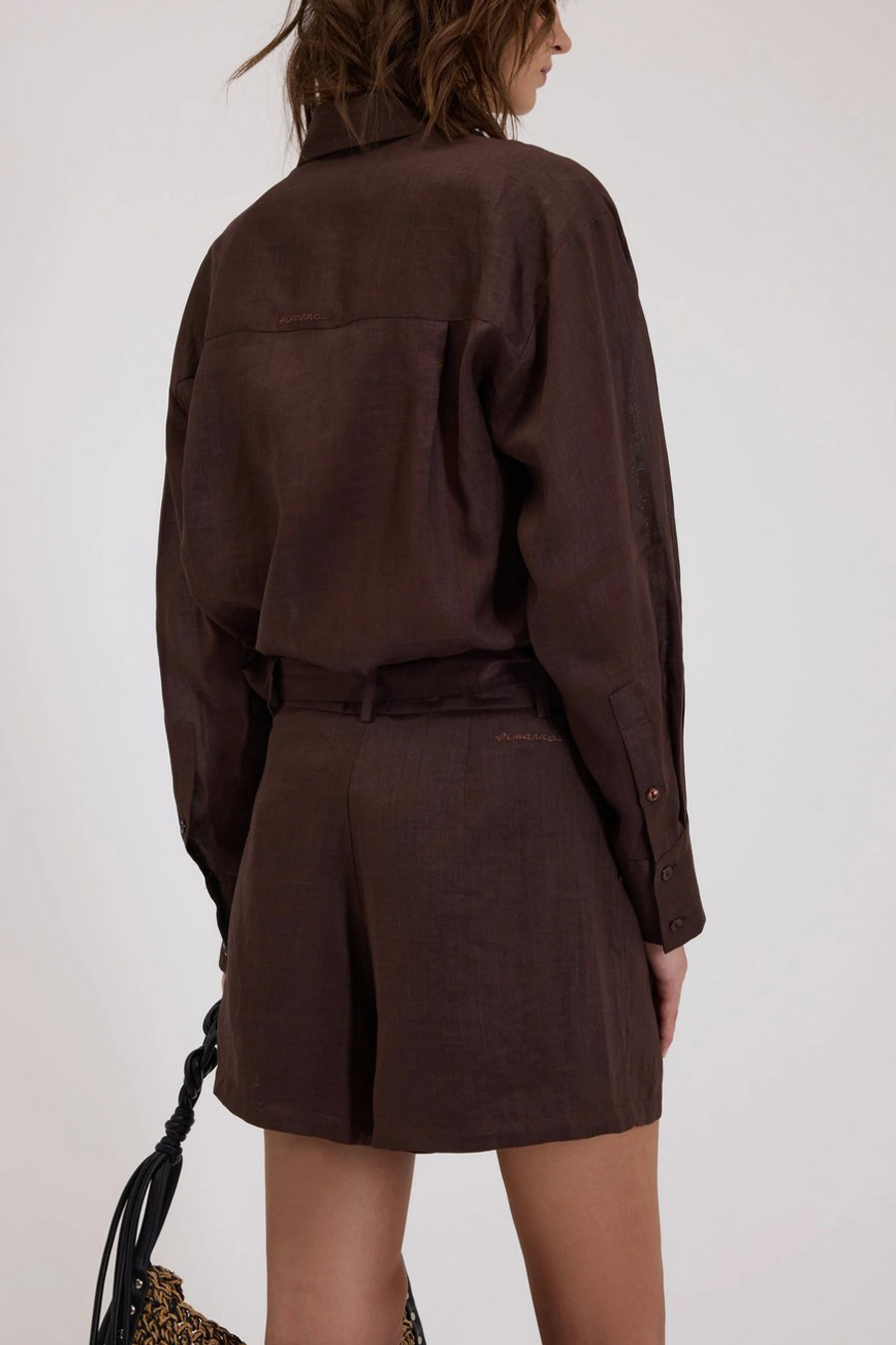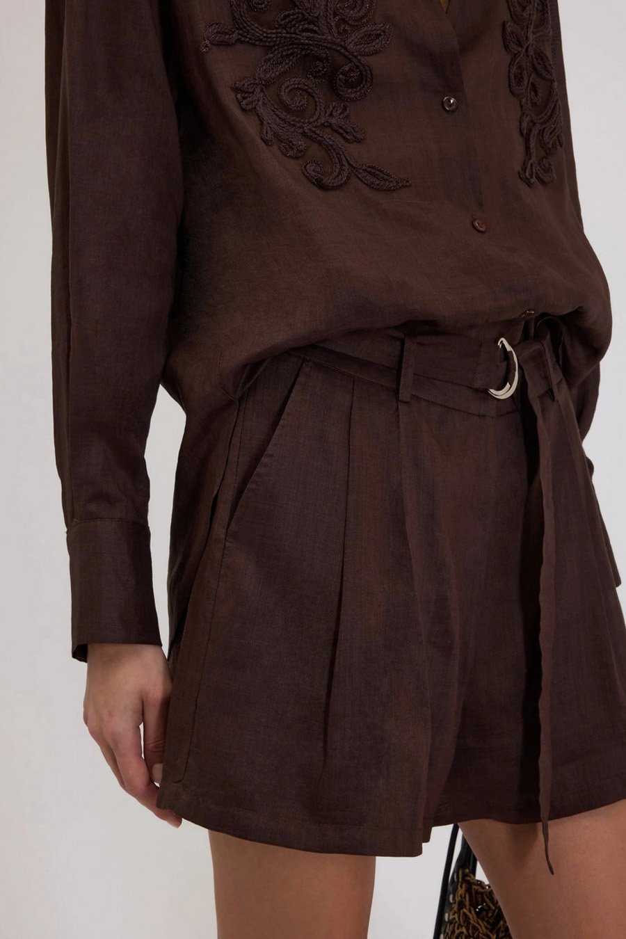 Linen Bermuda shorts with a belt by Ermanno Firenze from Ermanno Scervino, made of linen, with a regular waist and a fabric belt, and a wide leg with pleats at the front.
