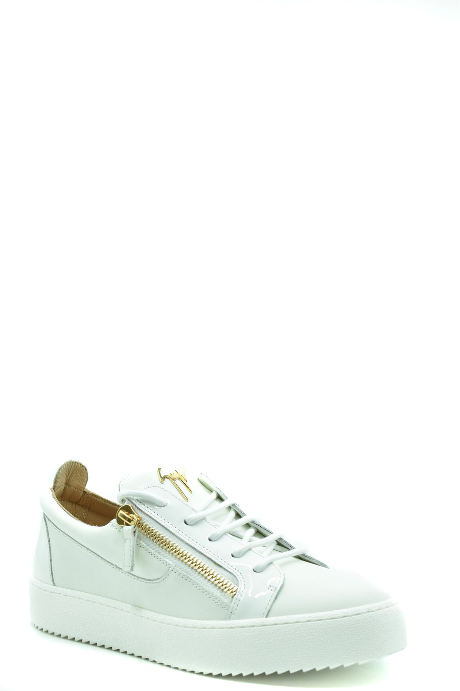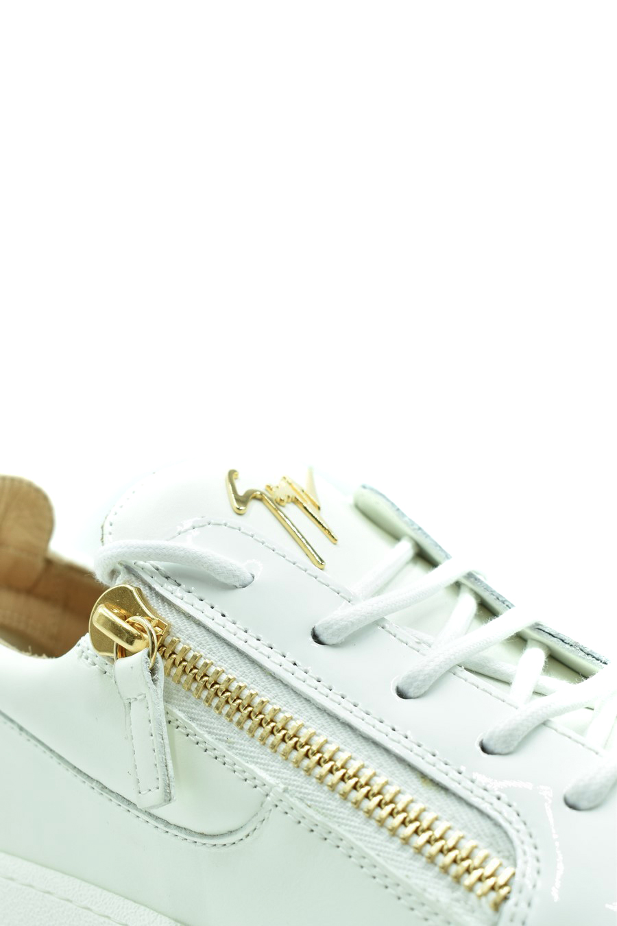 white leather sneackers from Giuseppe Zanotti featuring front lace up fastening, side zip fastening, round toe, flat rubber sole