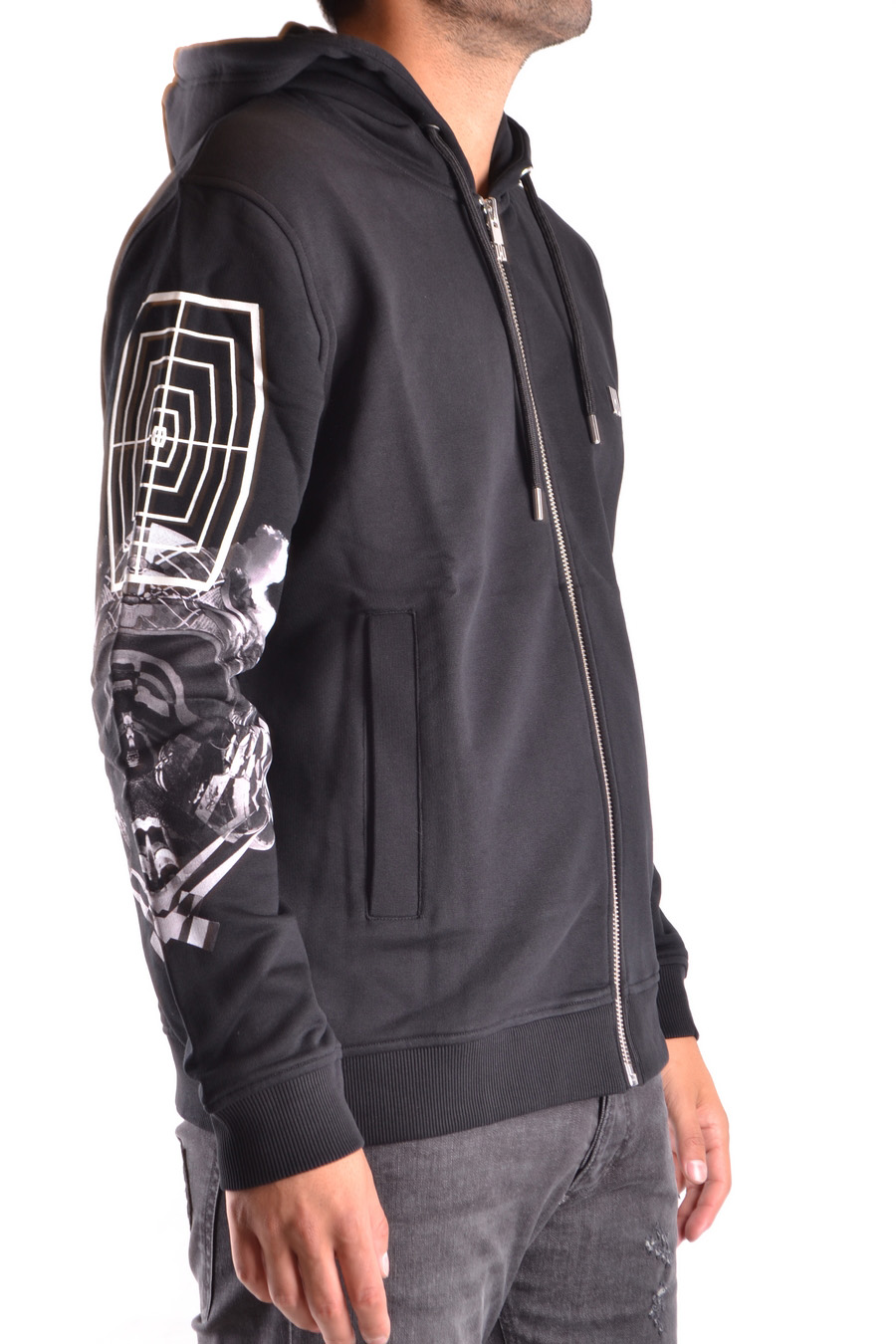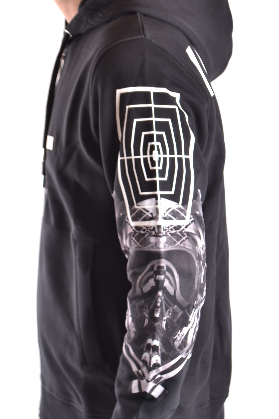 oversize fit hooded and zipped sweatshirt printed on the sleeves and back