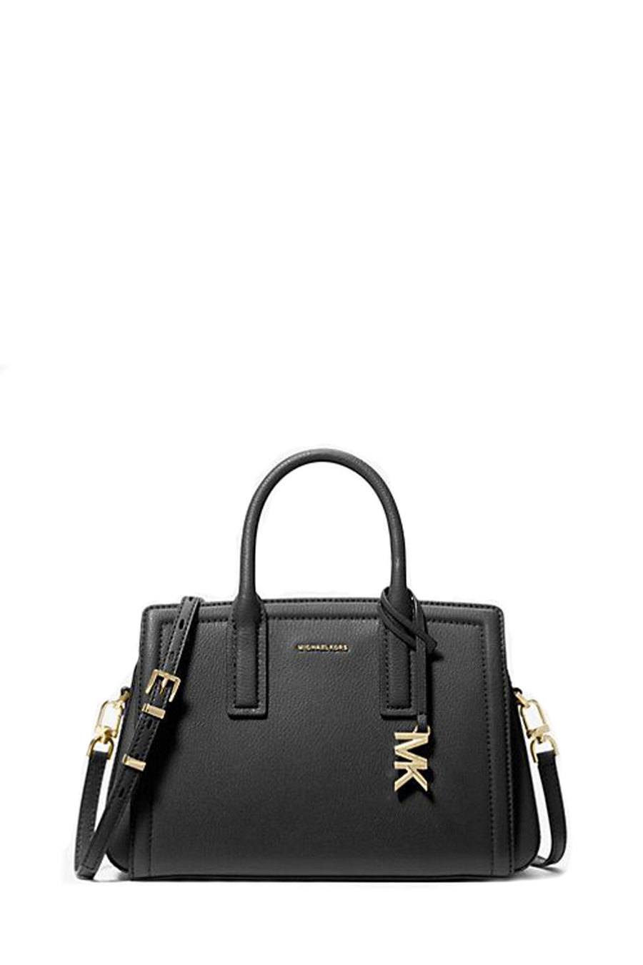 Small Laila Michael Kors handbag in hammered leather, gold-tone metal details, interior: back slip pockets and zip pockets, central zip pocket, snap button closure