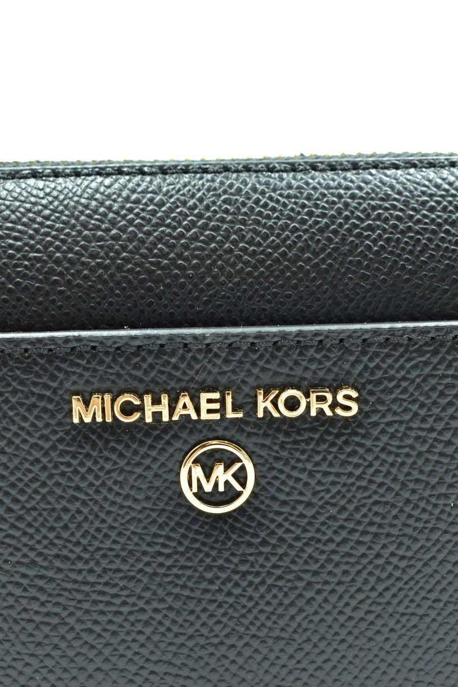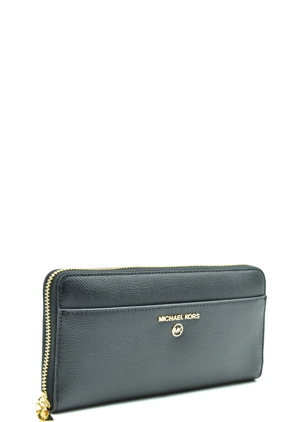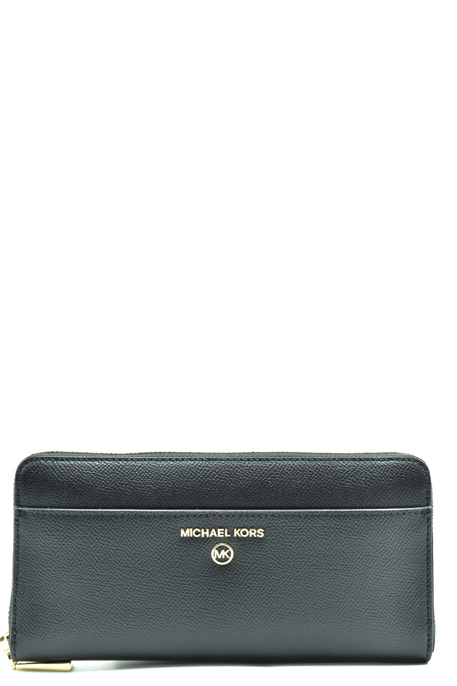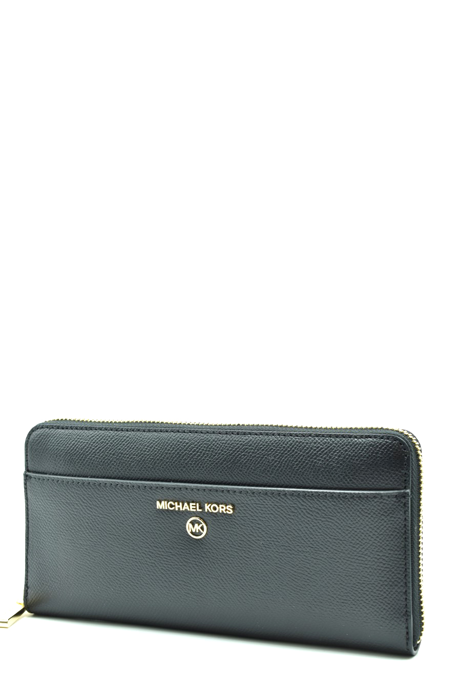 black leather zip-up wallet from Michael Kors featuring logo plaque, top zip fastening, main compartment, gold-tone hardware