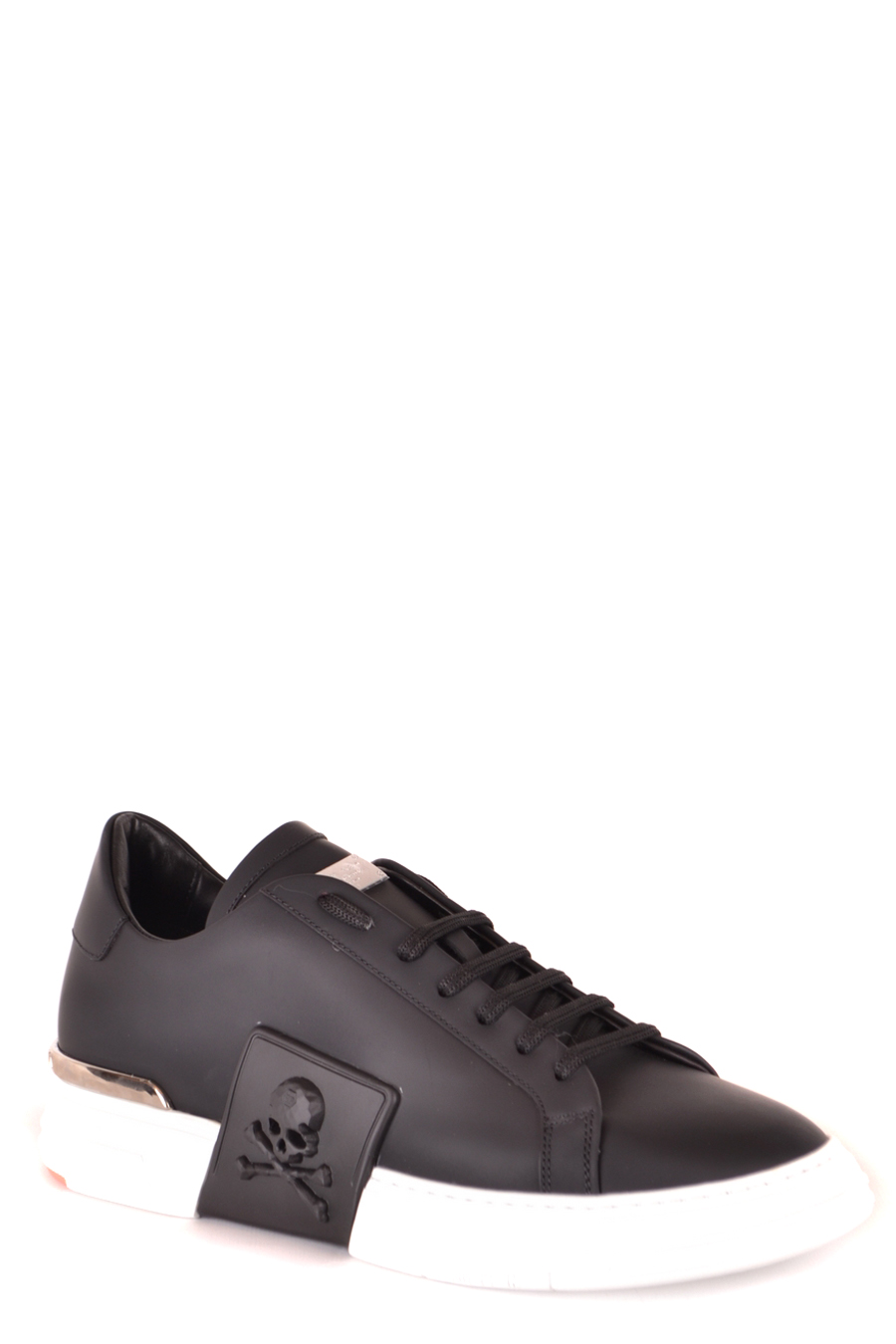 black leather original Lo-Top sneakers from Philipp Plein featuring lace-up front fastening, logo patch at the tongue, flat rubber sole