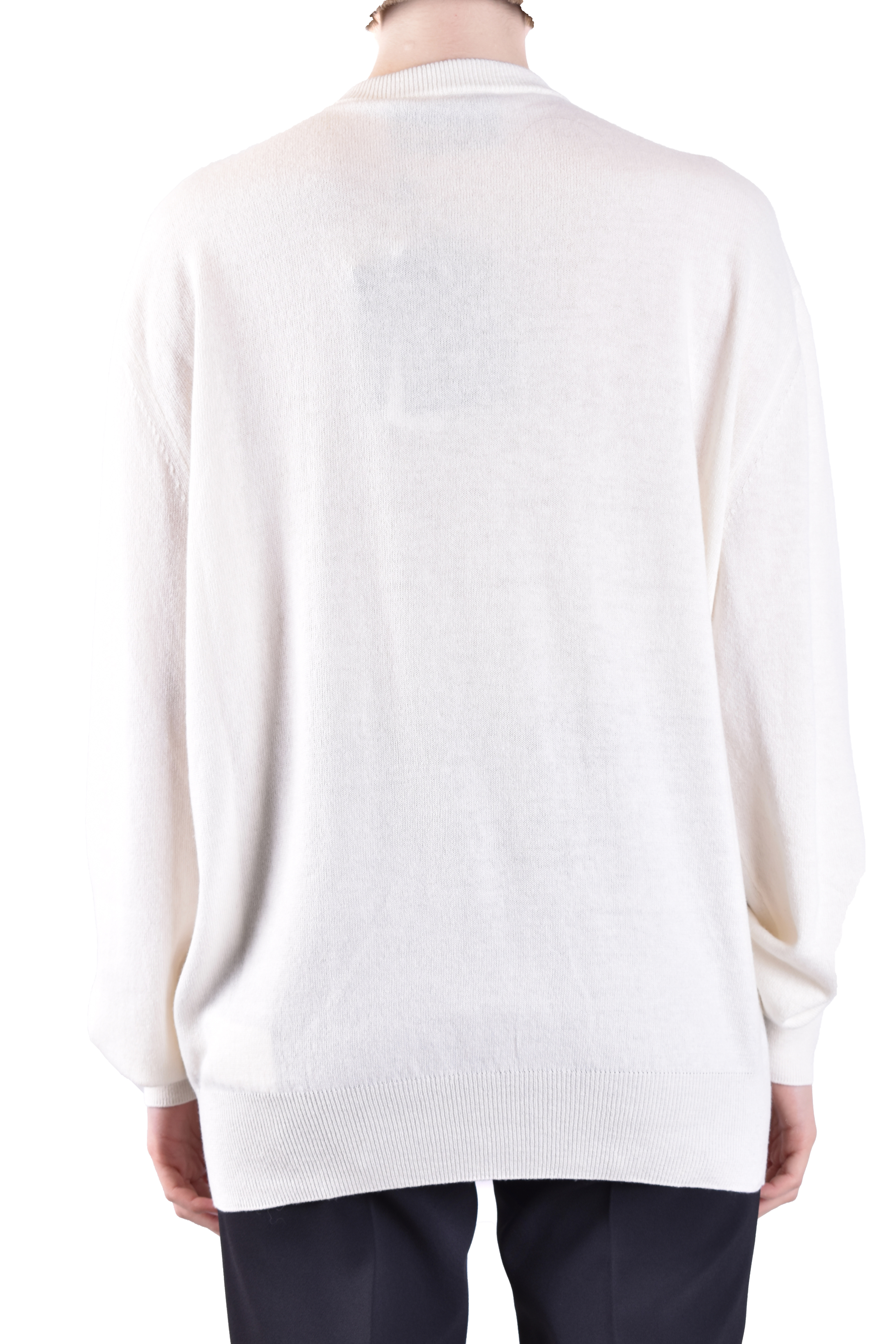 white cashmere blend sweater from Philipp Plein featuring round neck, long sleeves, skull studs design in front, logo applied back