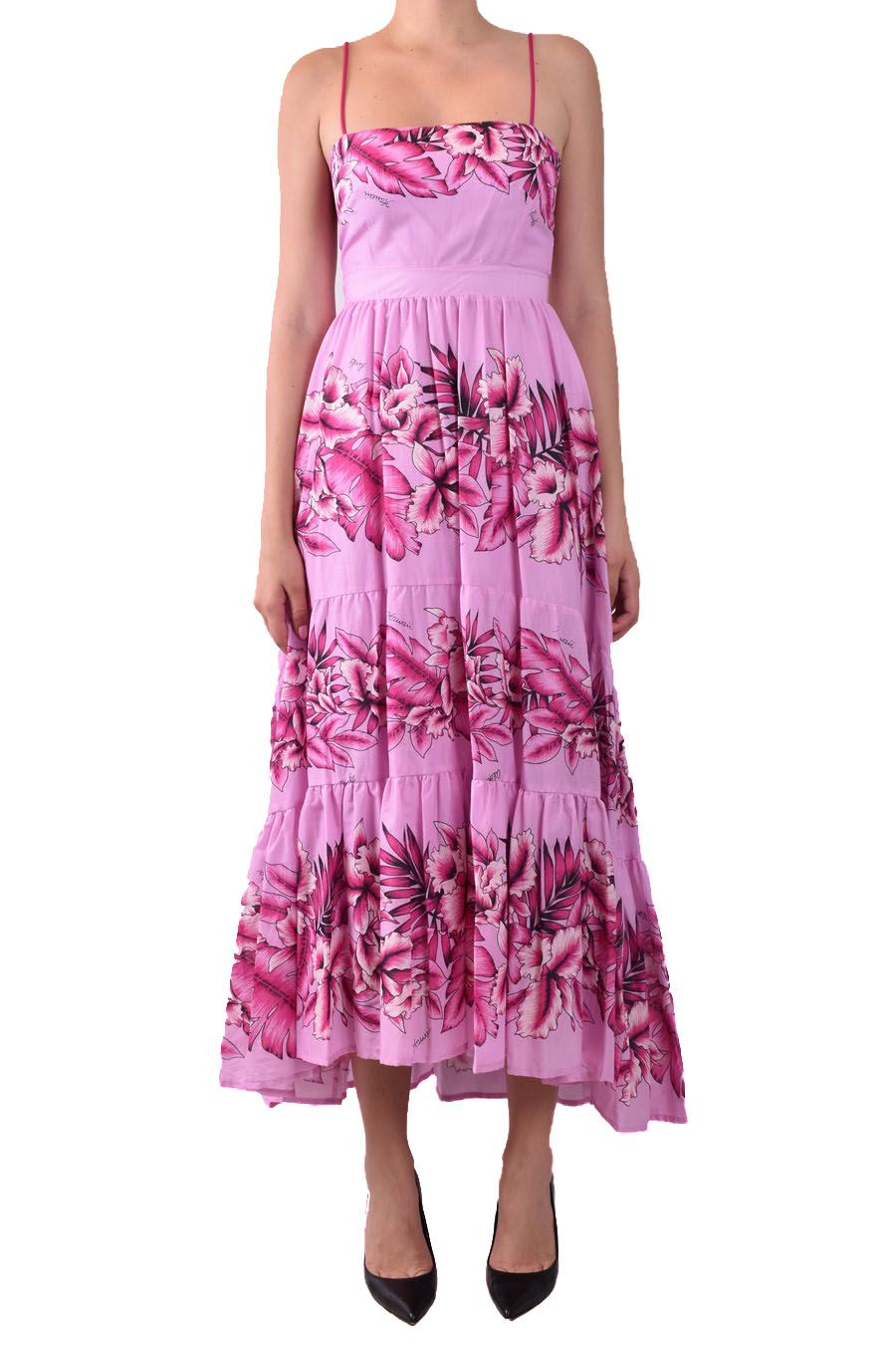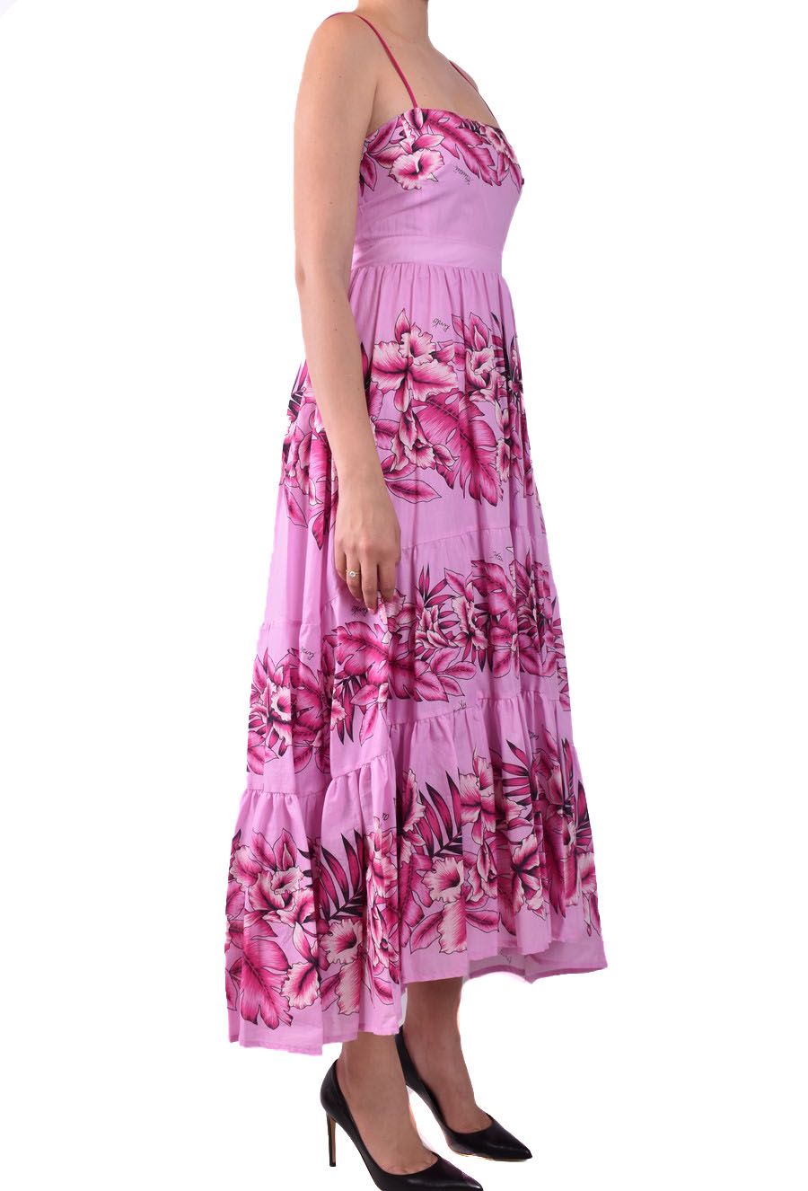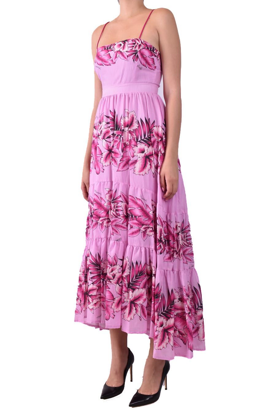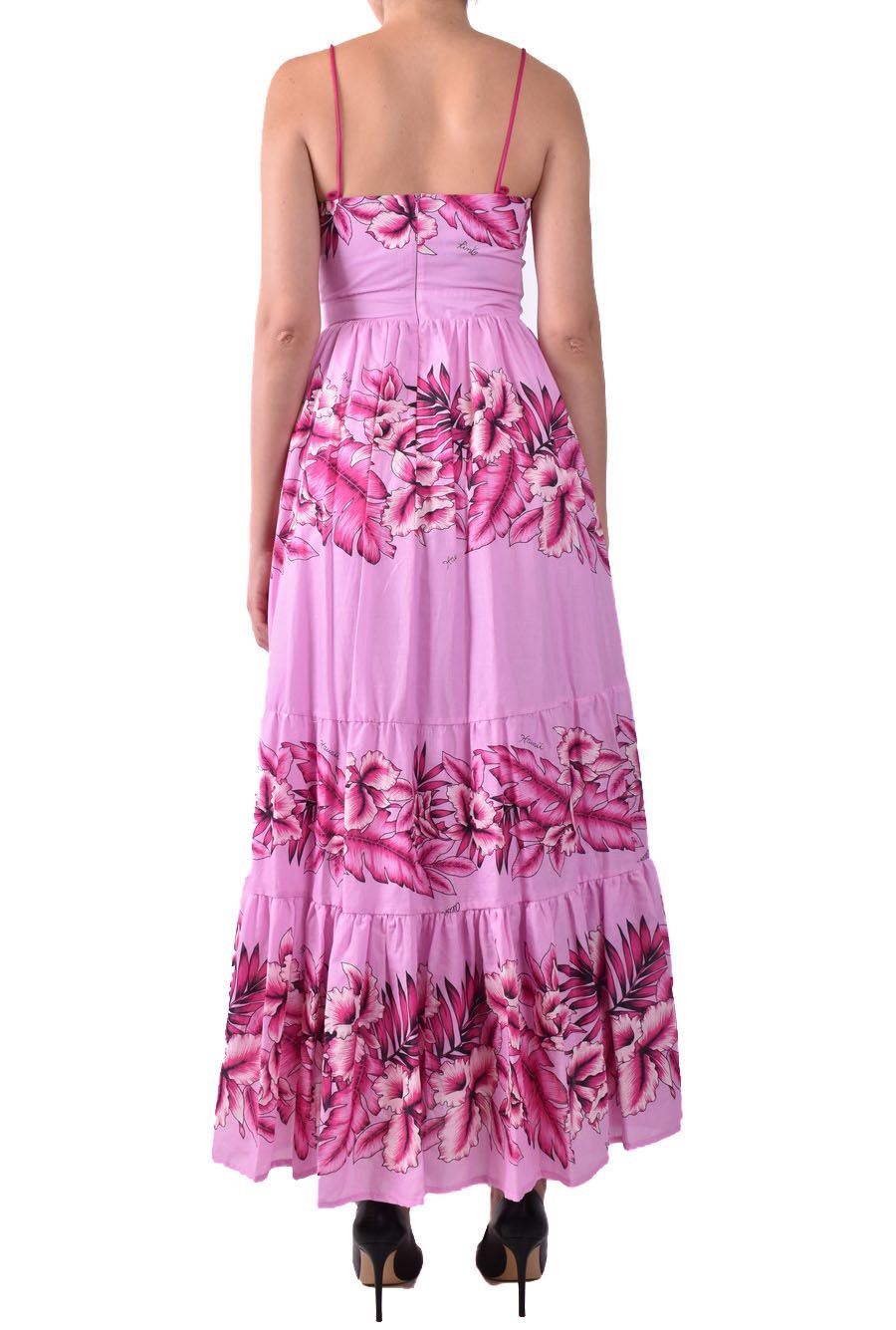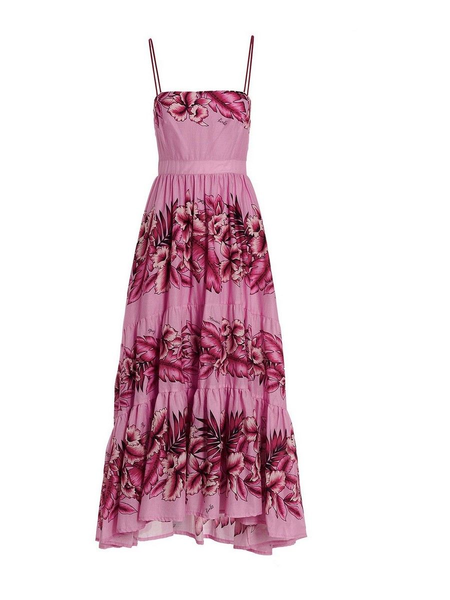 pink long dress from Pinko featuring rear zip fastening, spaghetti stripes, pink flowers print all-over