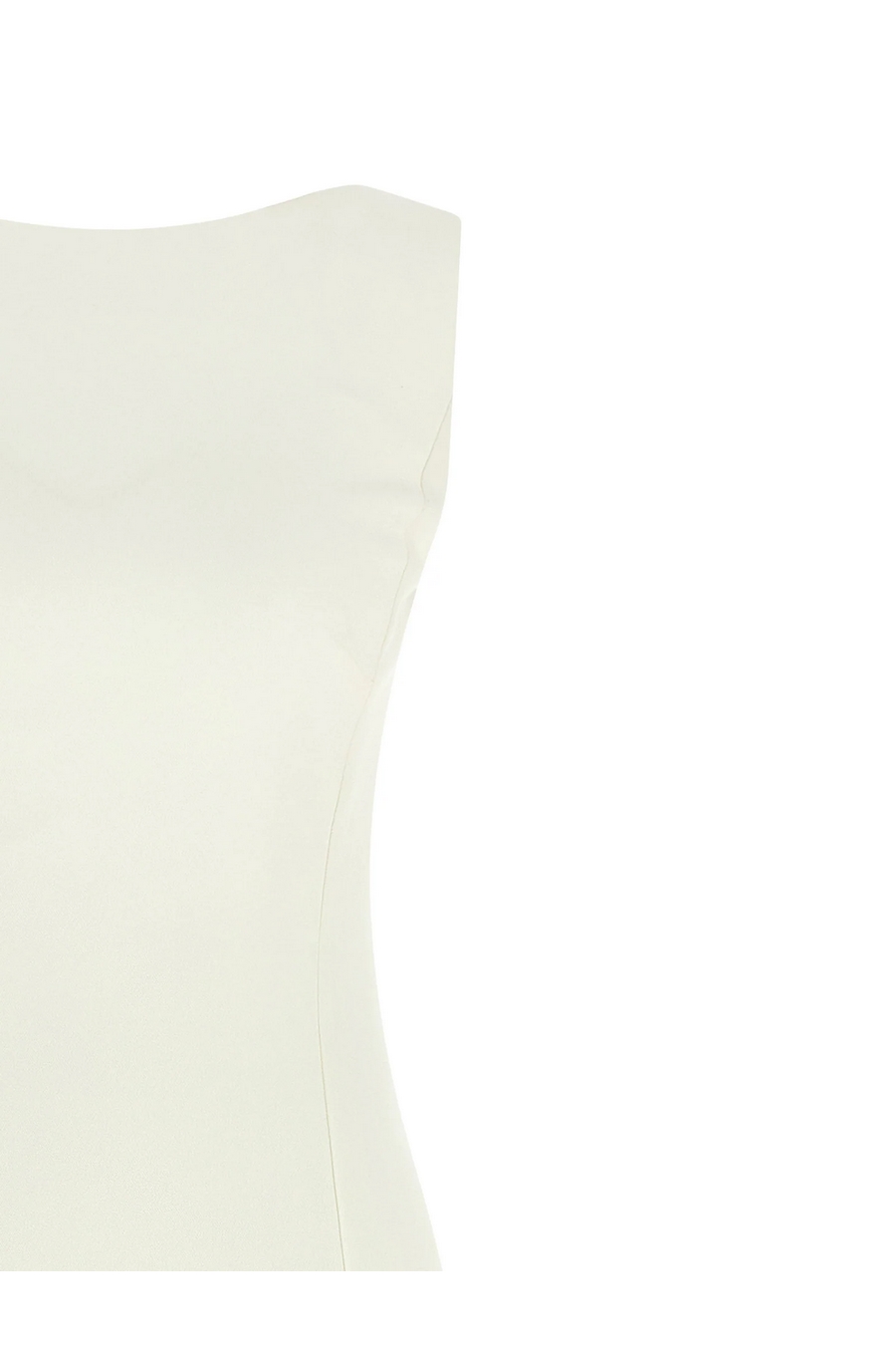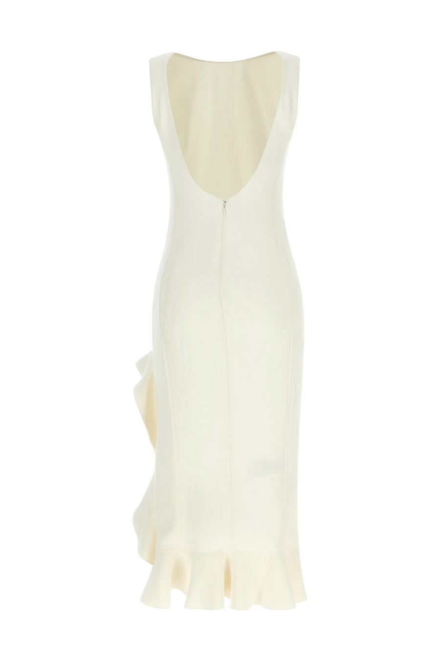 Pinko sleeveless maxi dress with a plunging back neckline, made from stretch viscose fabric for an optimal fit. The laser-cut spiral ruffles paired with satin create a contrast between shiny and matte that enhances the texture of the fabric.