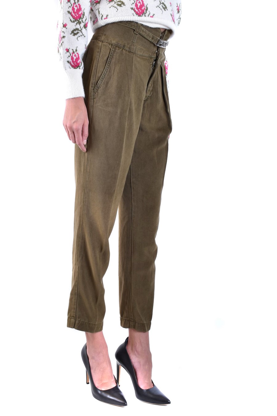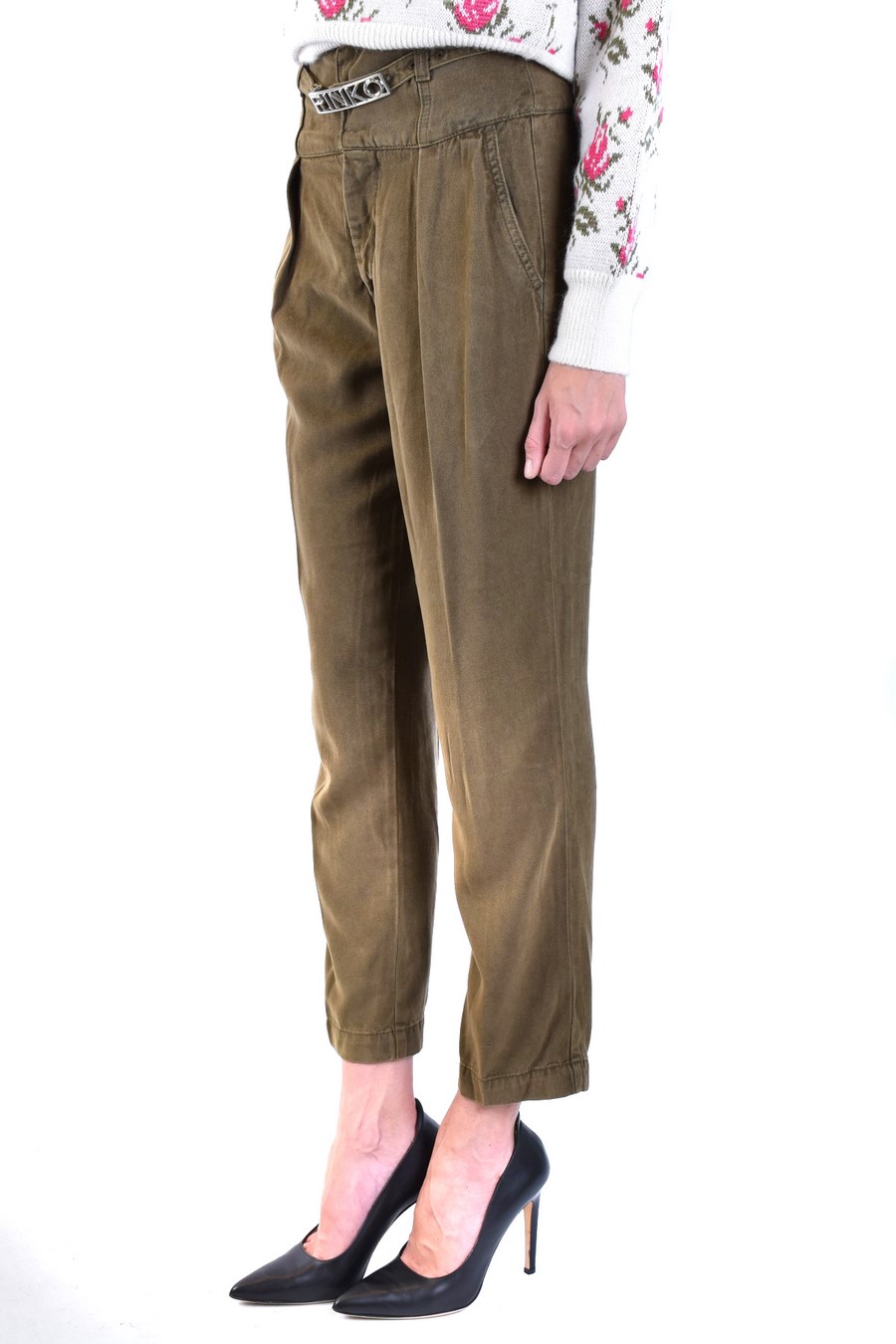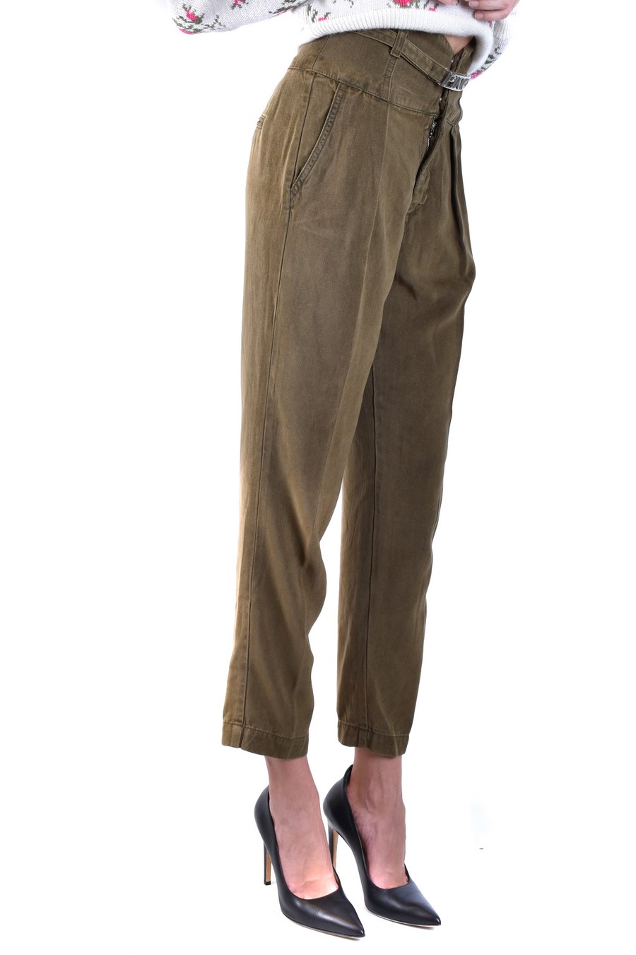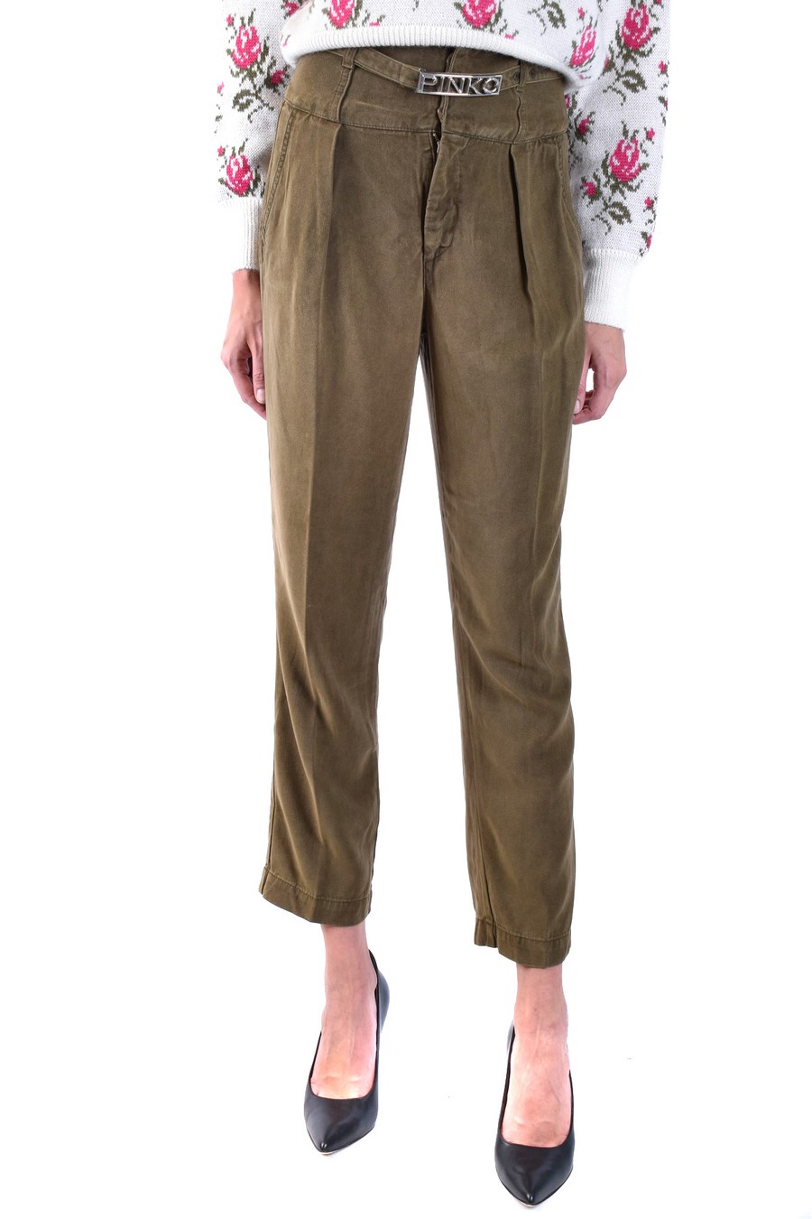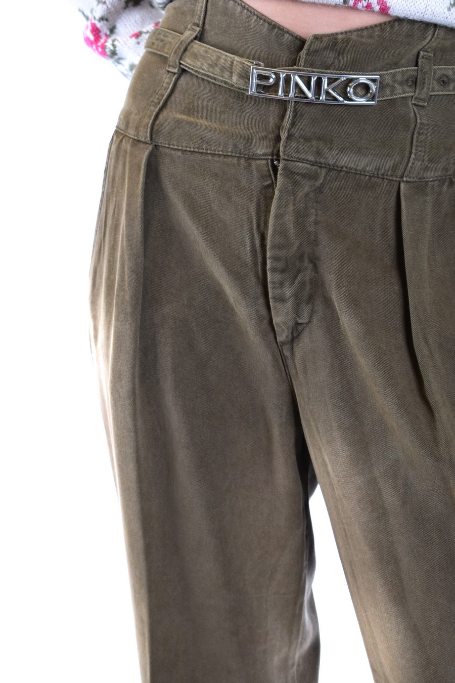 green washed trousers from Pinko featuring button and zip fastening, waist belt, two pinced in front, two side pockets