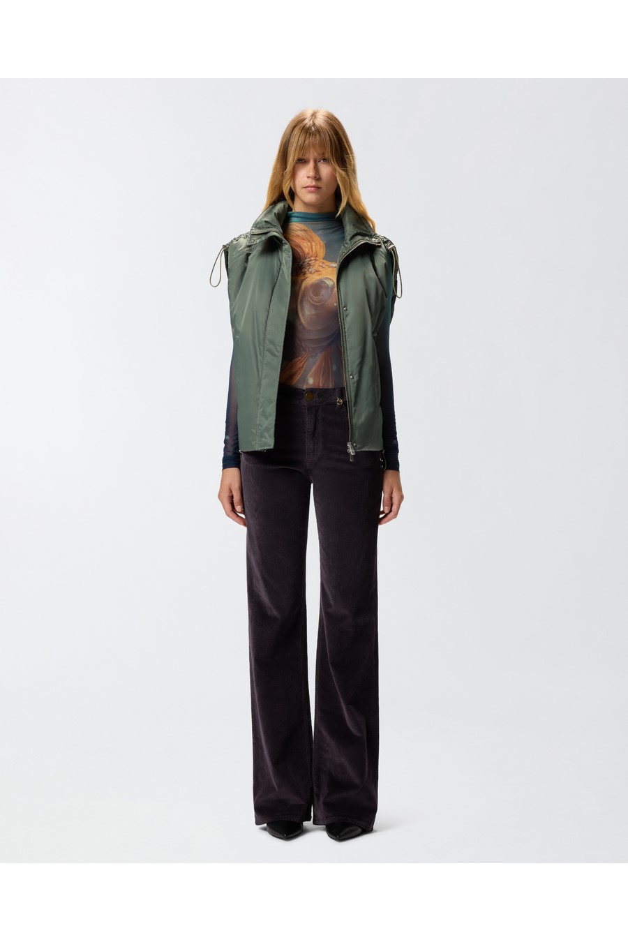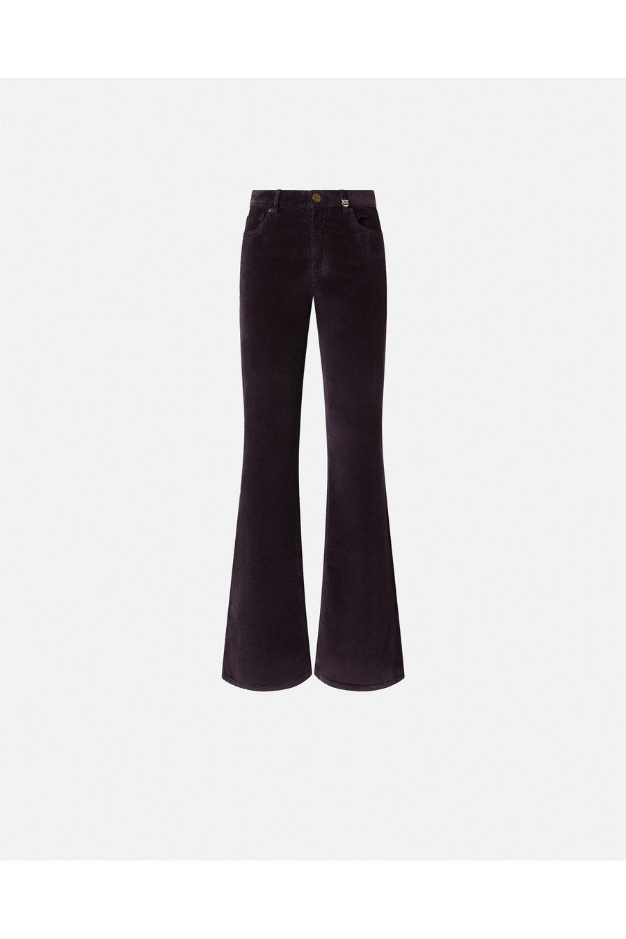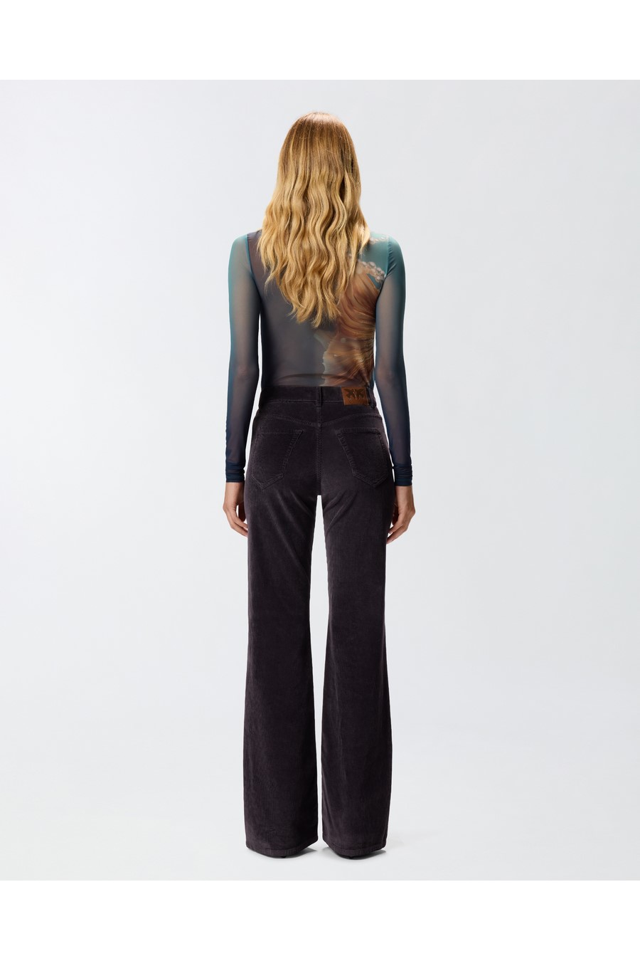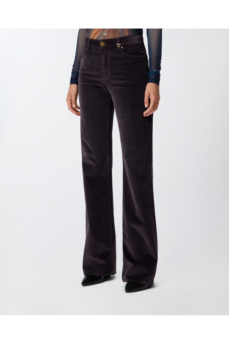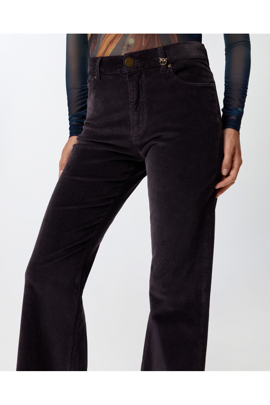 Pinko five-pocket flare-fit corduroy trousers with a flared silhouette, fitted at the top of the leg and flared at the bottom, in corduroy with an old wash to give a three-dimensional effect, belt loops and front closure with button and concealed zip.