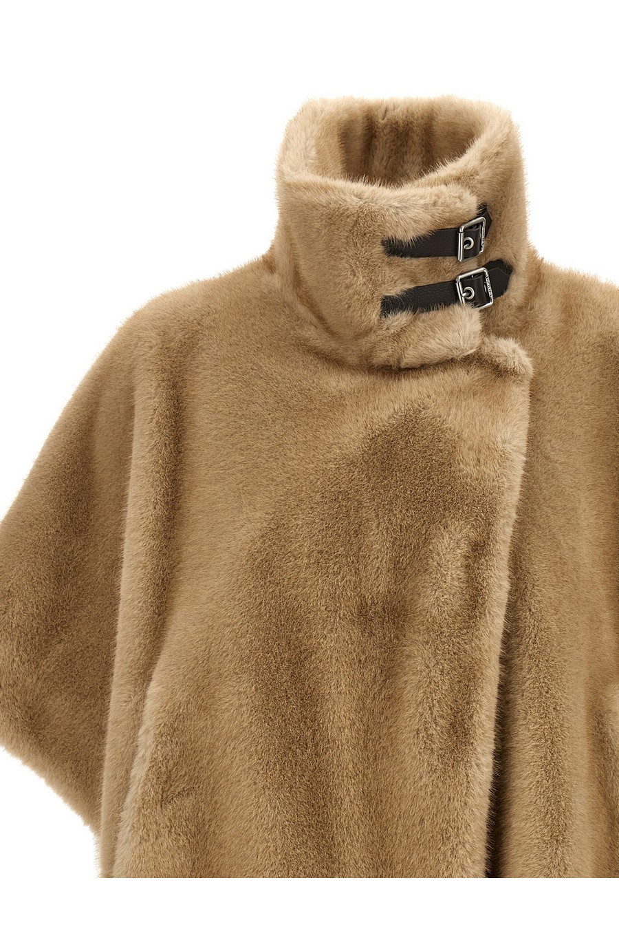 Pinko short cape with short sleeves, welt pockets, wraparound folded collar and off-centre front fastening, made from soft Aspen fabric with a fur effect, lined.