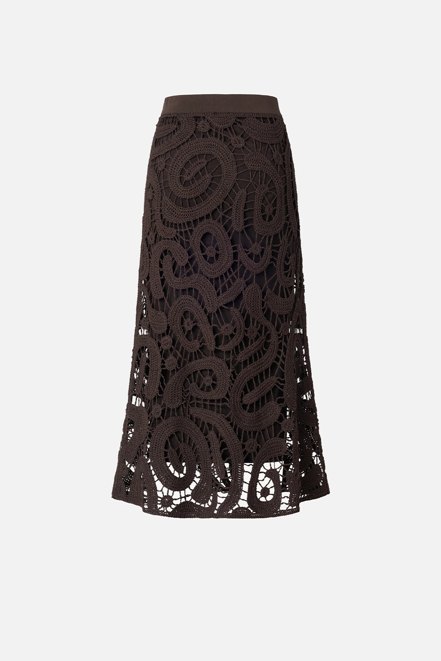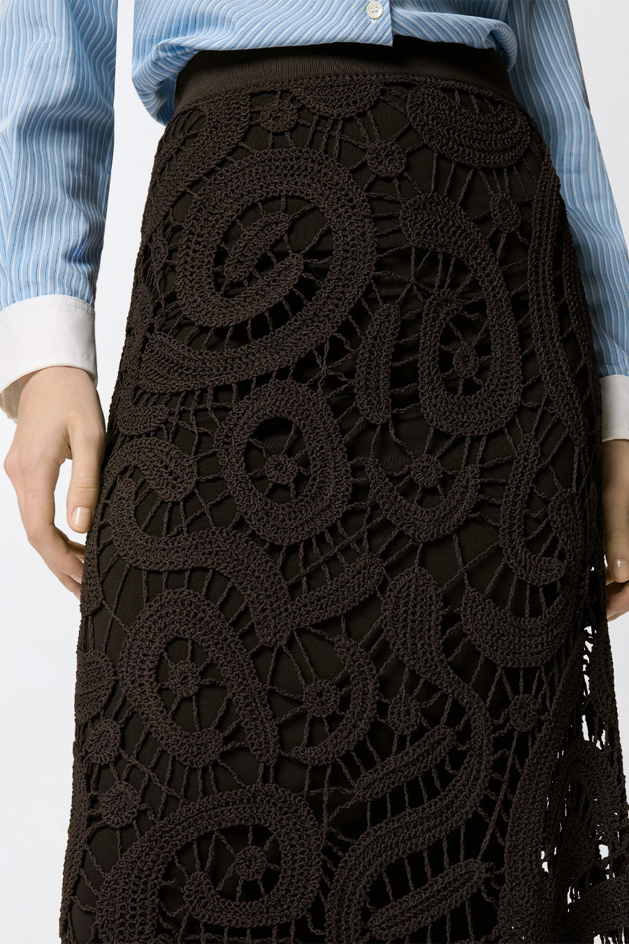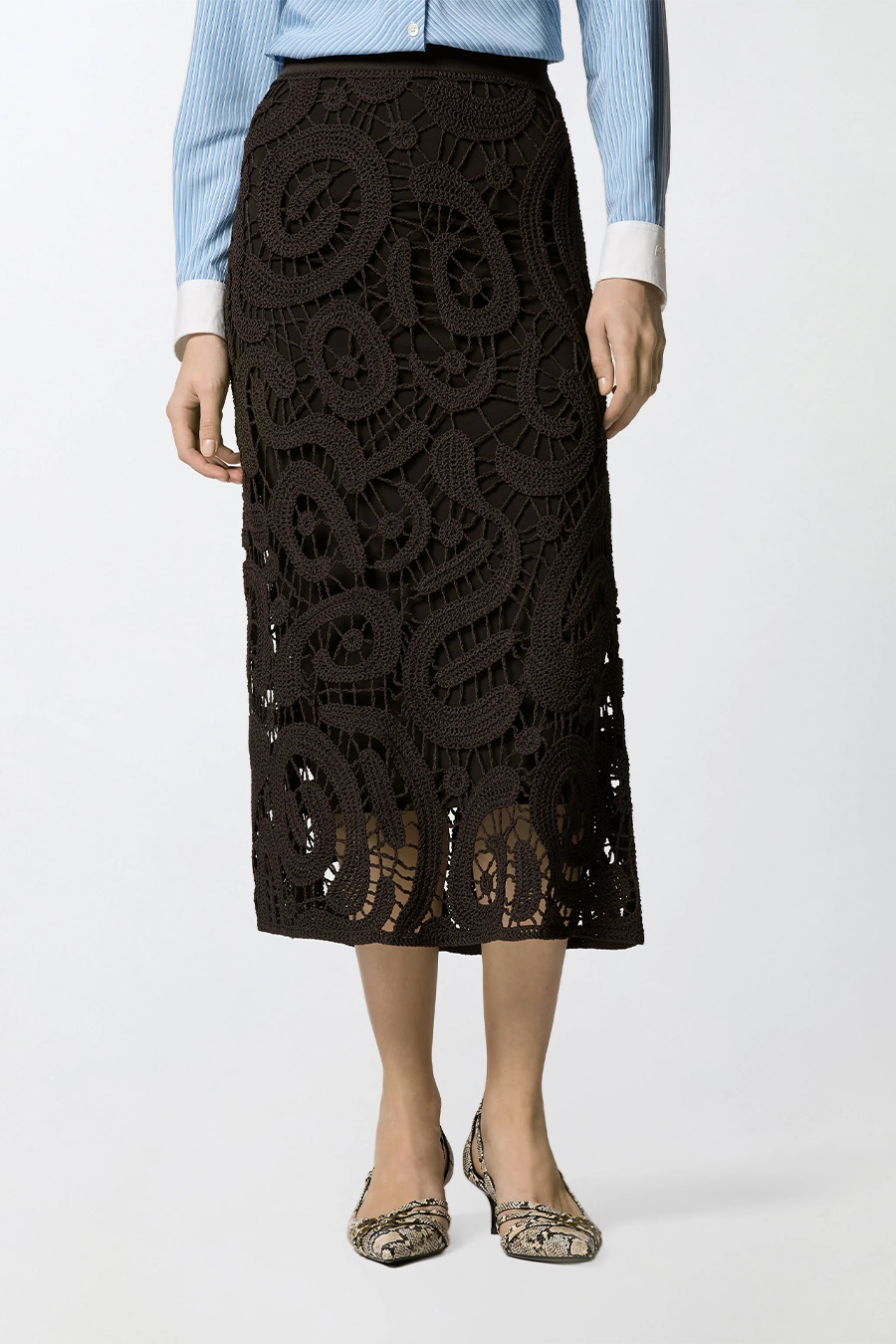 PINKO skirt Midi-length skirt with a flared hem, elasticated waist and refined crochet detailing featuring an innovative geometric pattern with inner lining.
