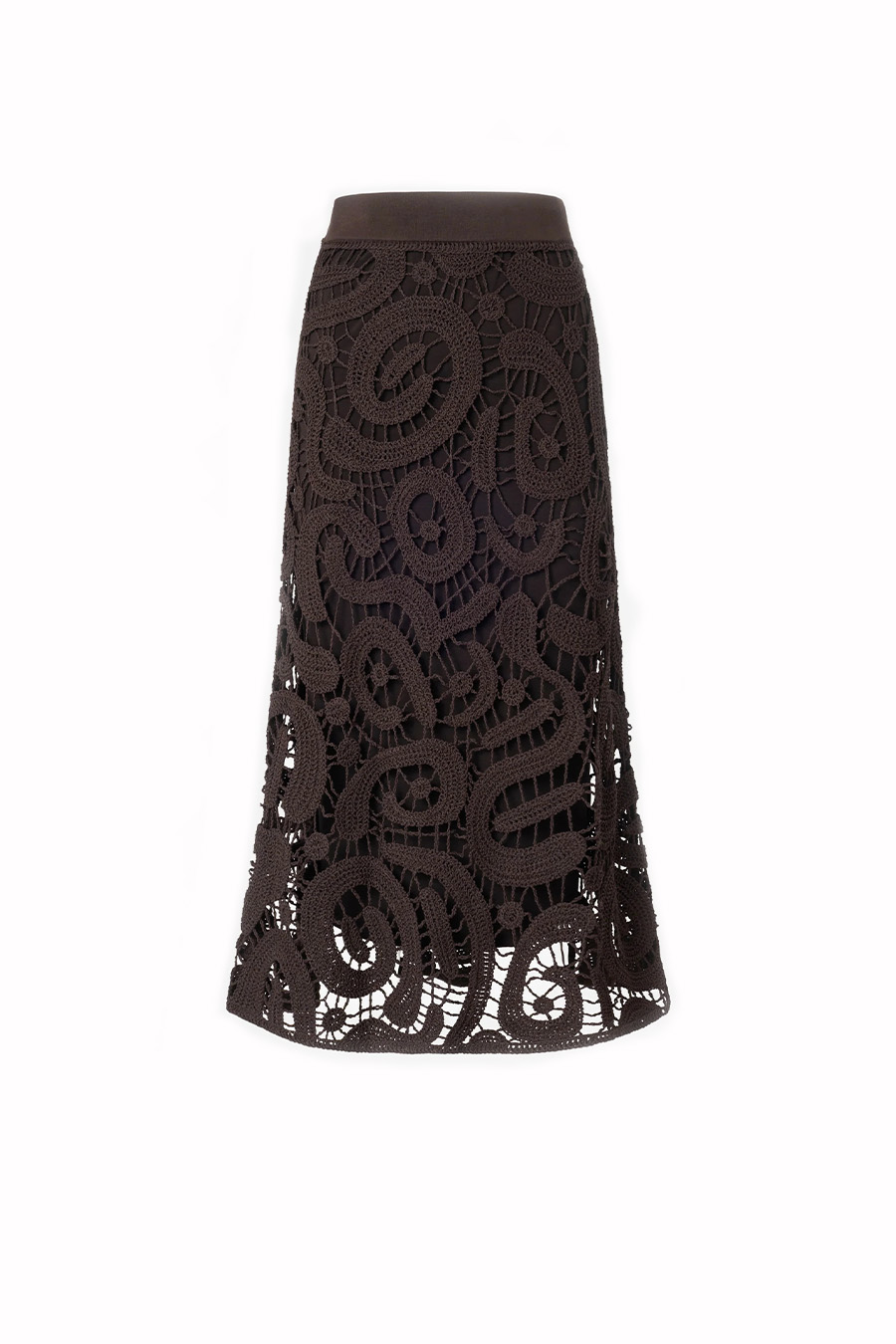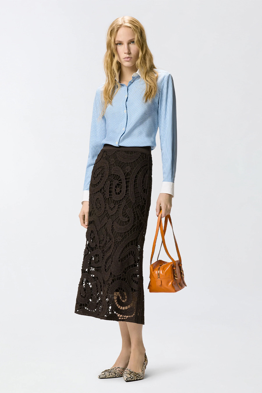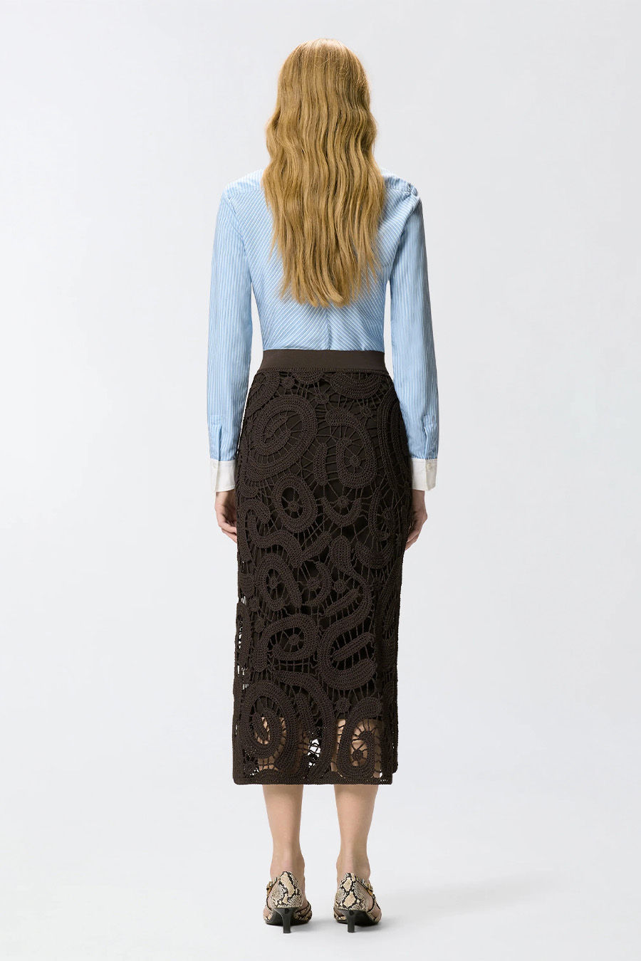 PINKO skirt Midi-length skirt with a flared hem, elasticated waist and refined crochet detailing featuring an innovative geometric pattern with inner lining.