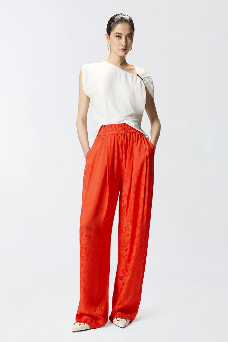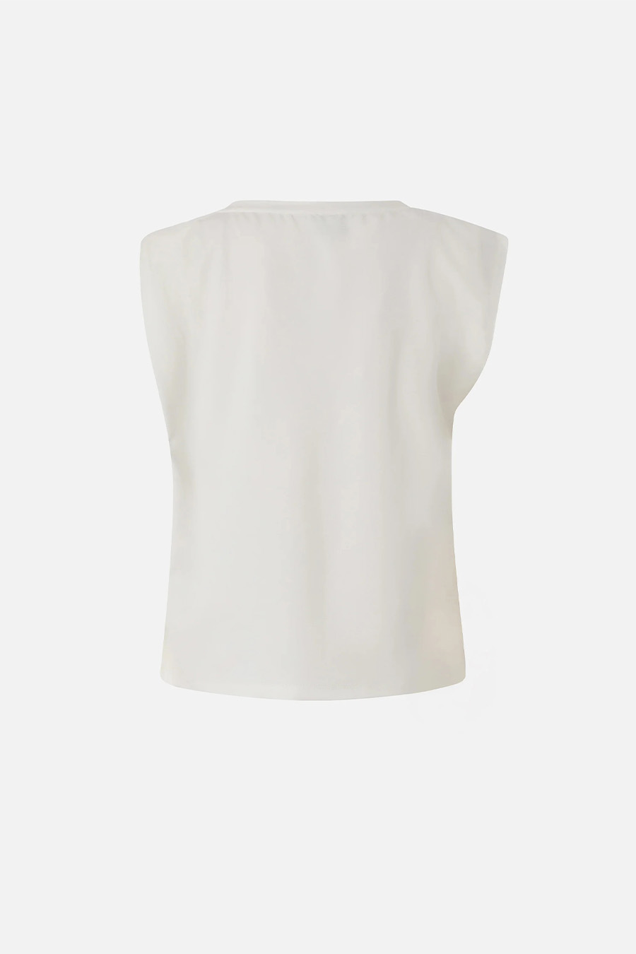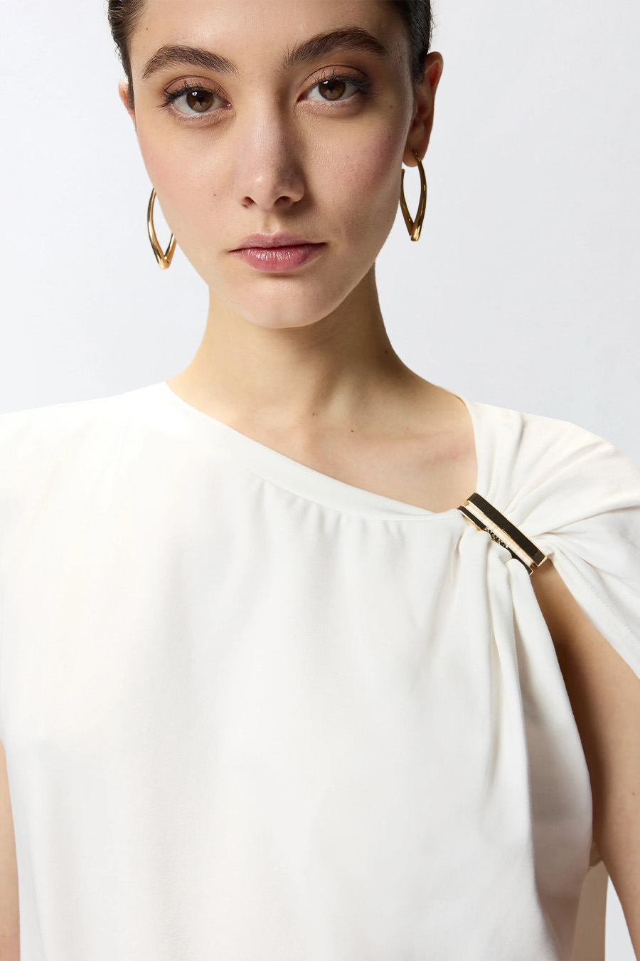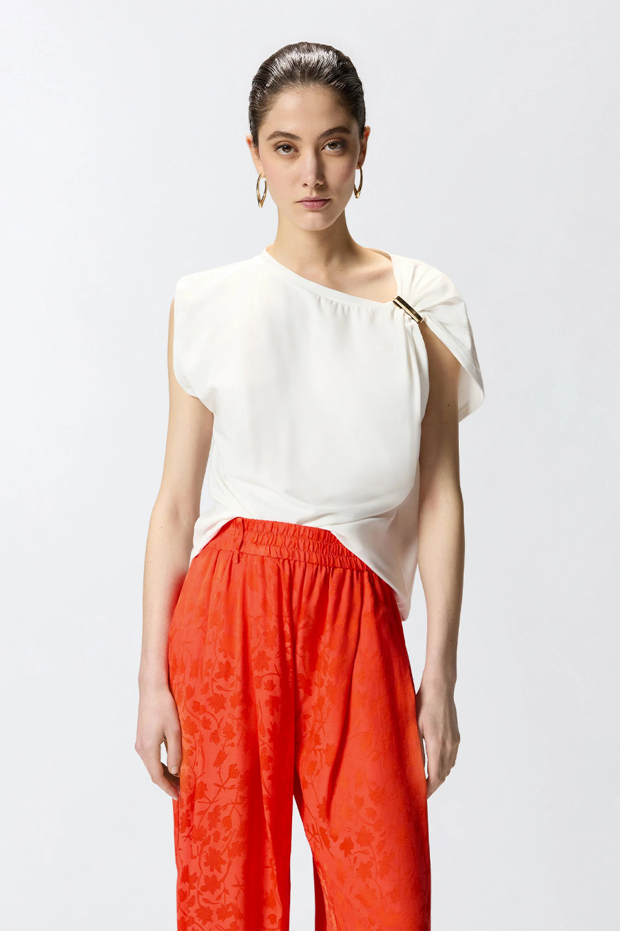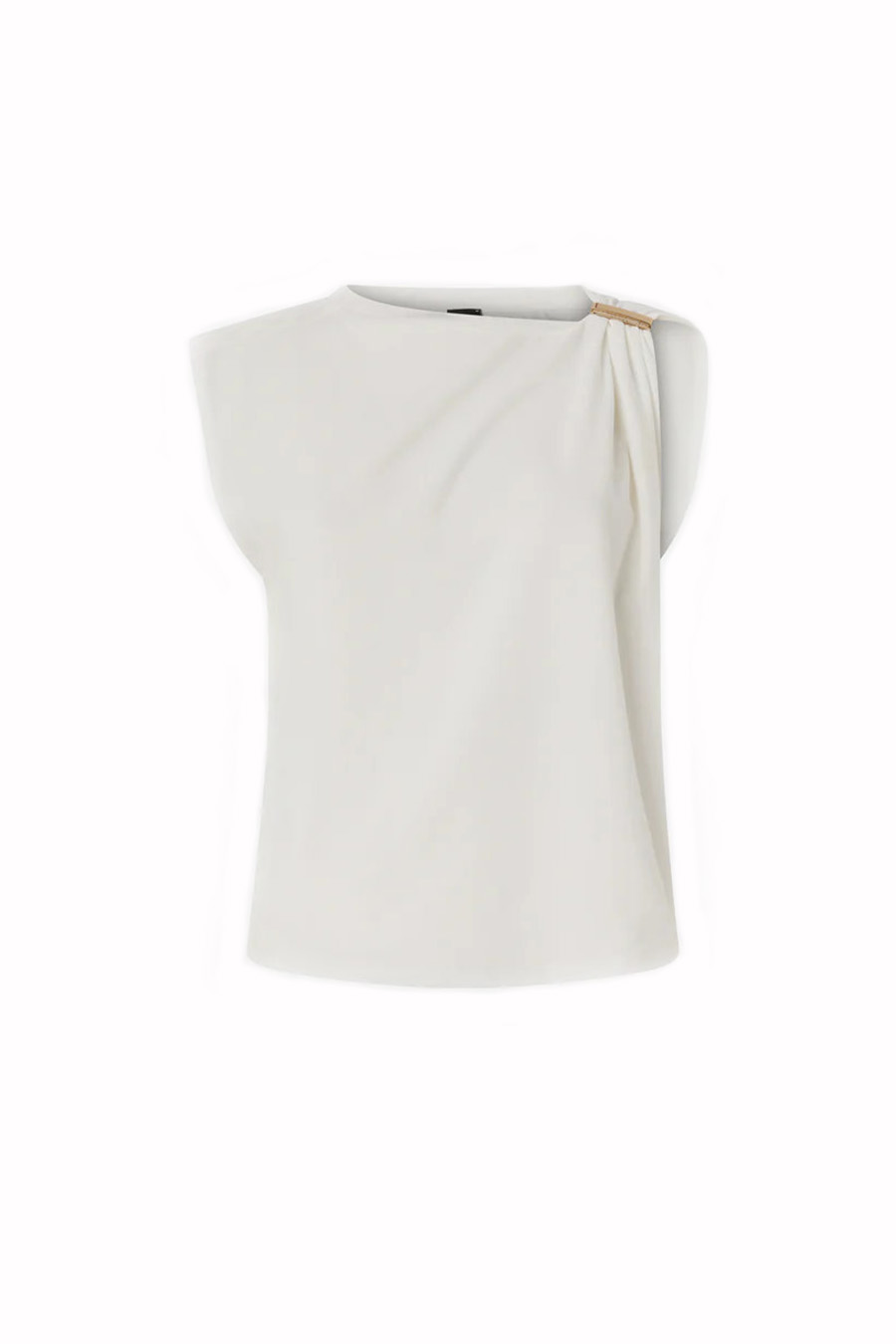 PINKO top with wing sleeves made from Supima cotton stretch interlock, with a gold appliqué detail on the shoulder that creates a refined drape.