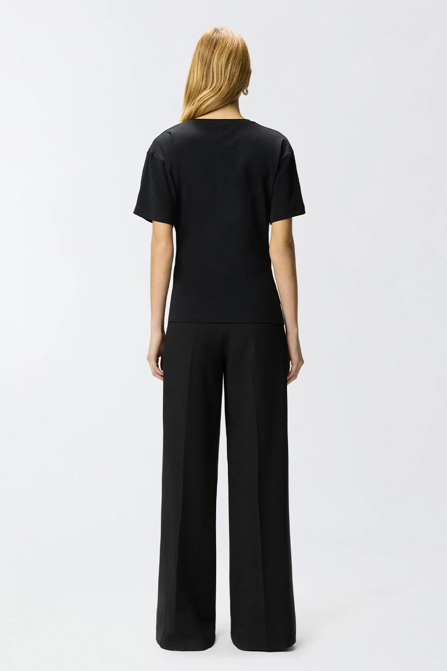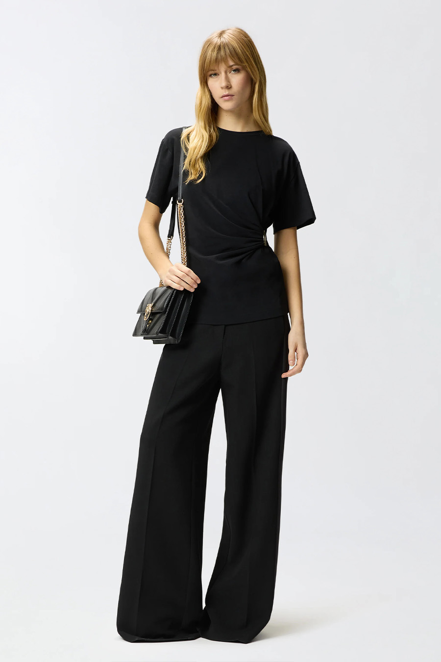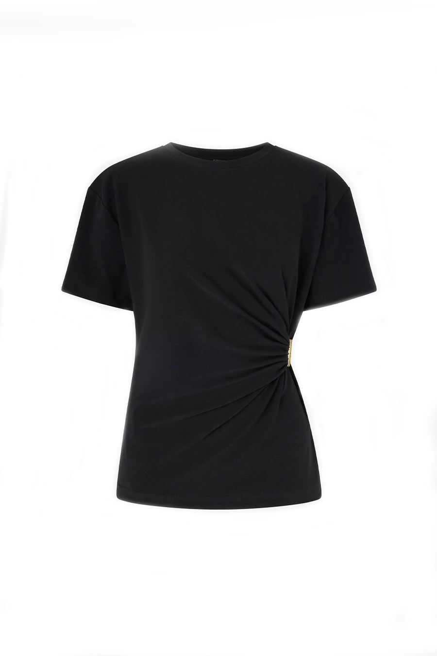 PINKO short-sleeved crew neck T-shirt in Supima cotton stretch interlock, with a gold appliqué at the waist that creates a refined drape at the front.