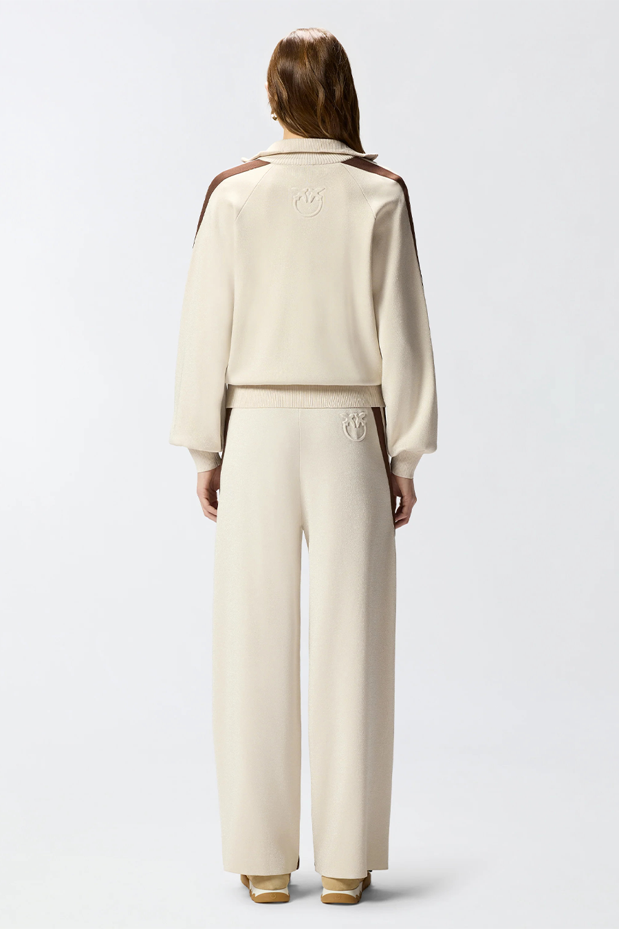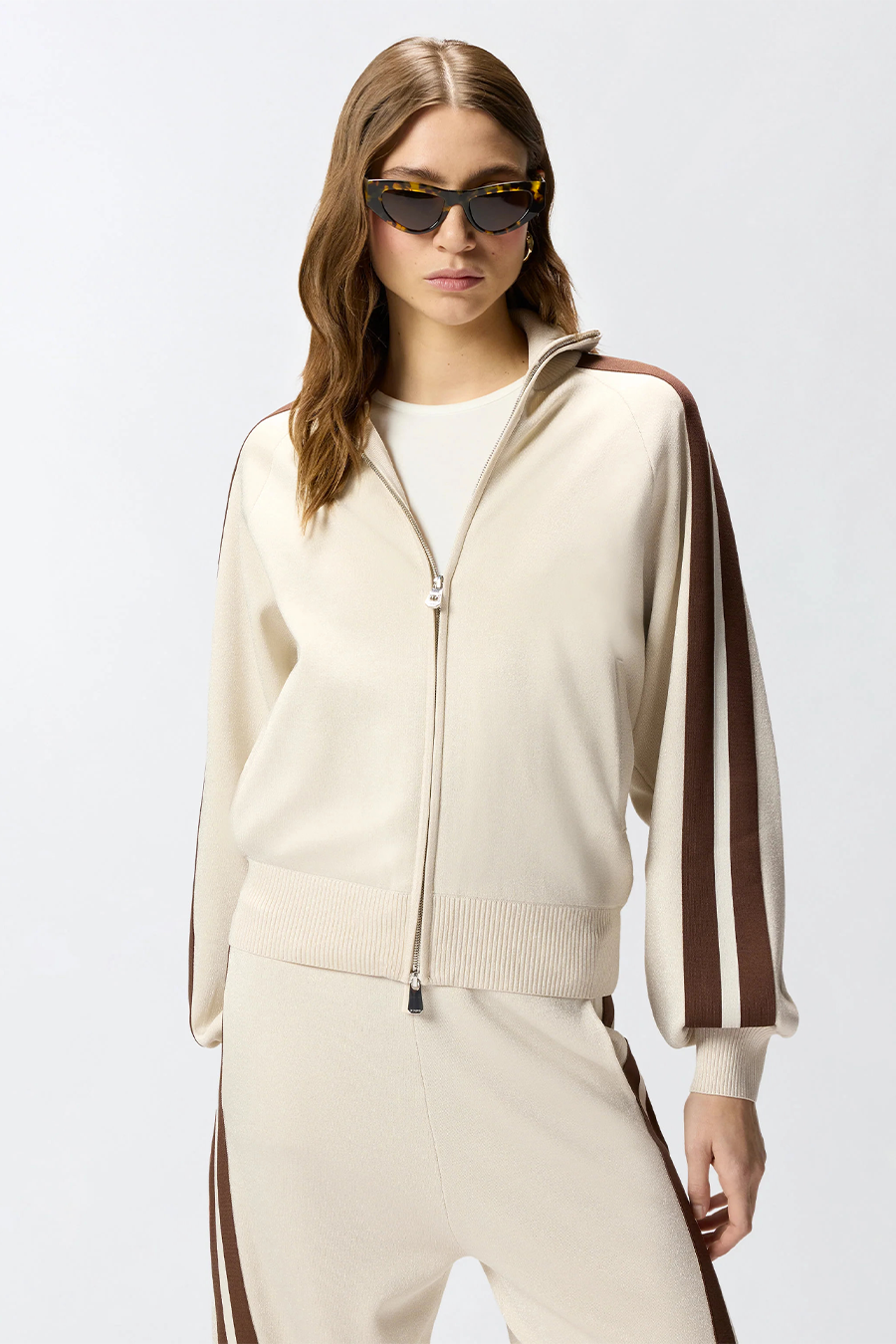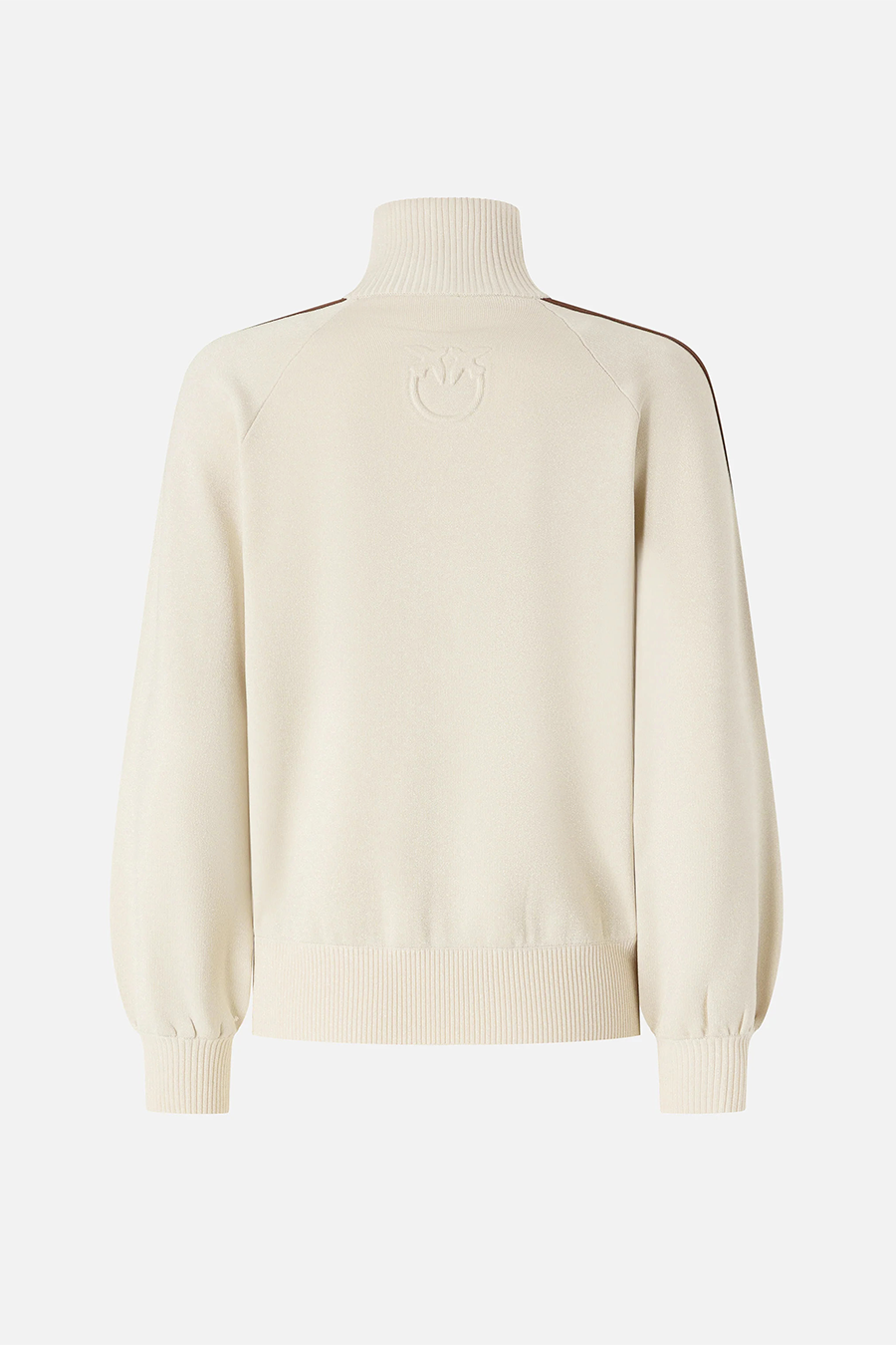 Pinko zip-up sweatshirt with Love Birds logo, high collar with double-slider zip, made from technical sweatshirt-effect piqué and embellished with ultra-fine luminous yarn, featuring long raglan sleeves with contrasting bands, comfortable side pockets and ribbed trim.
