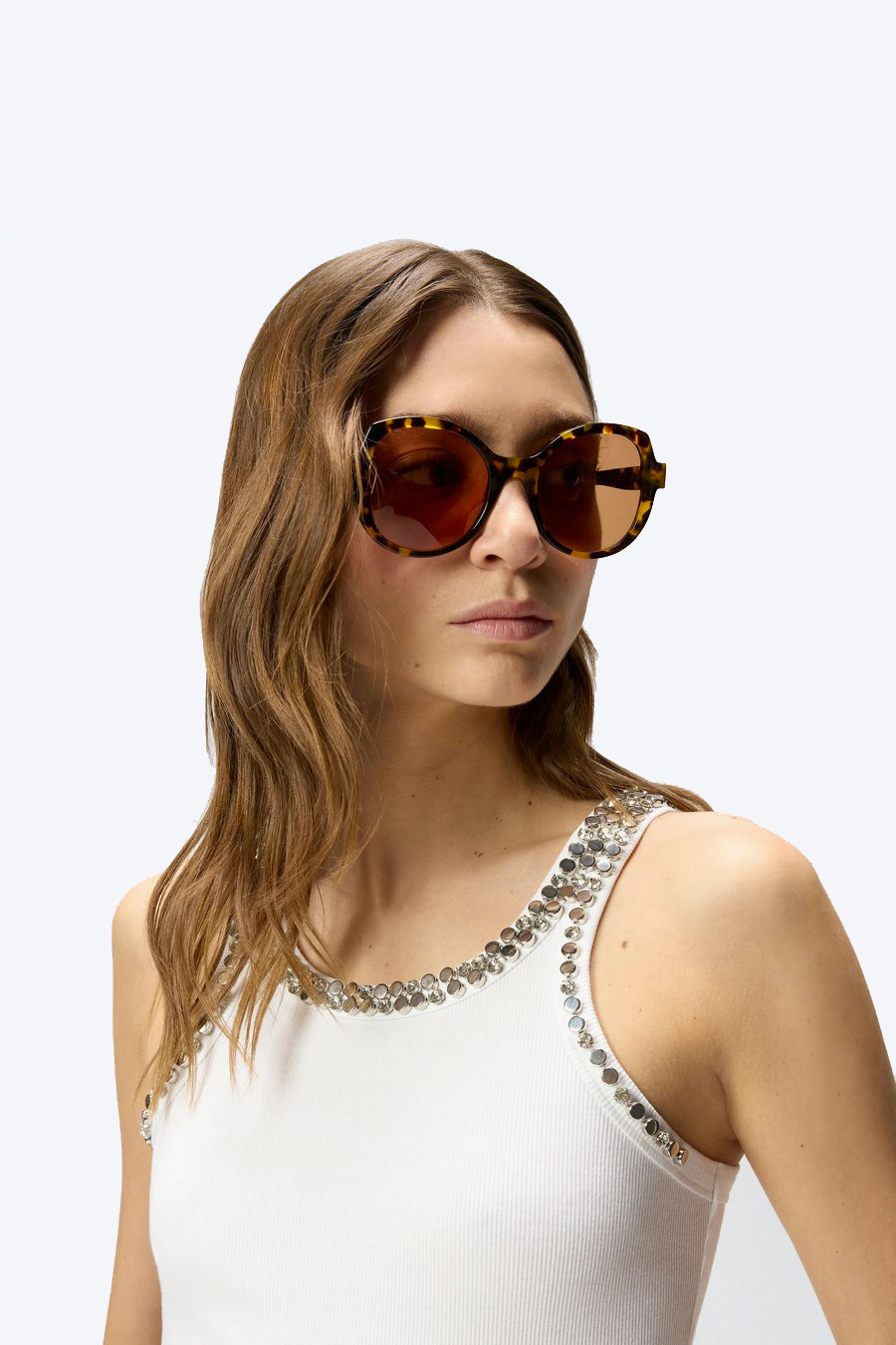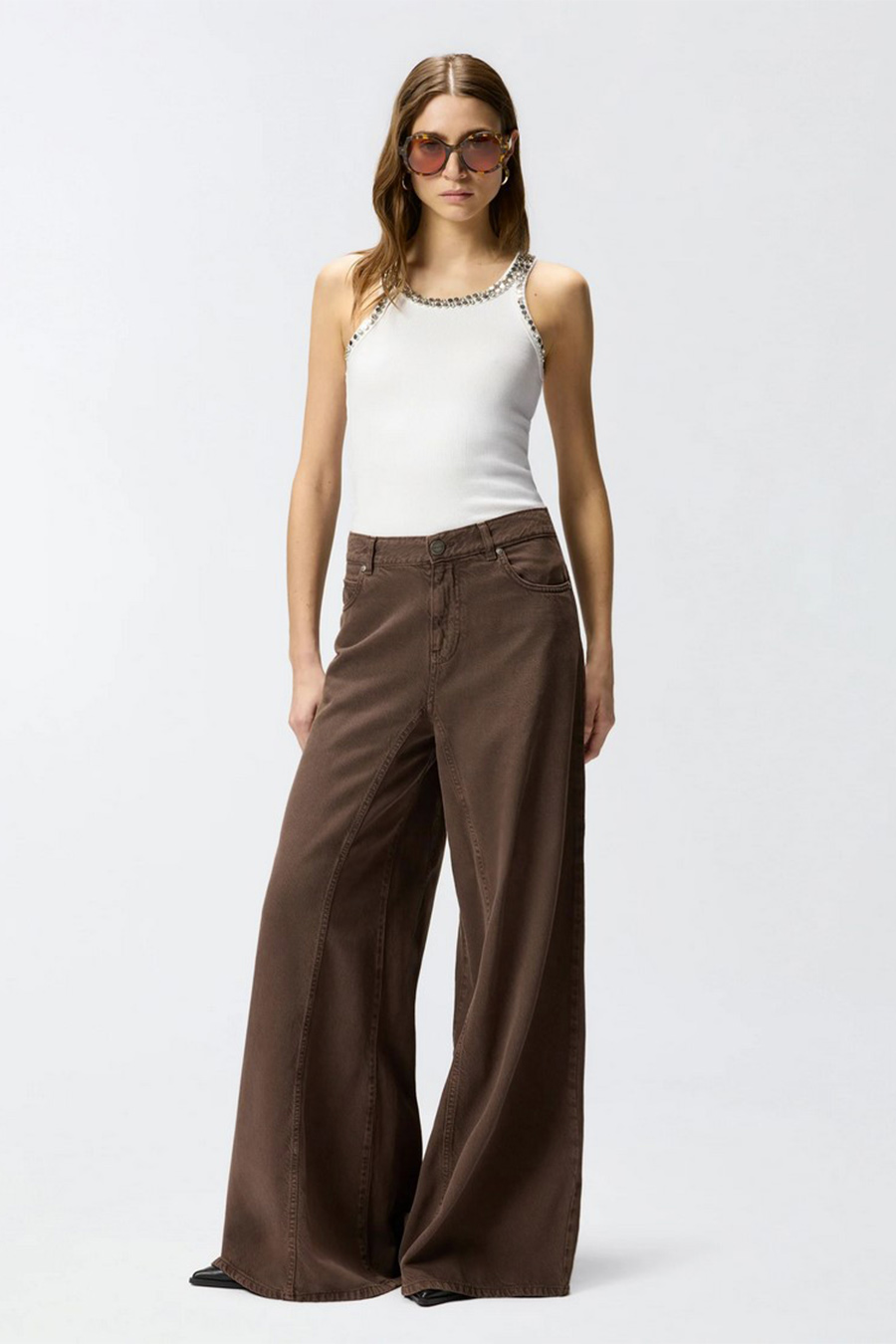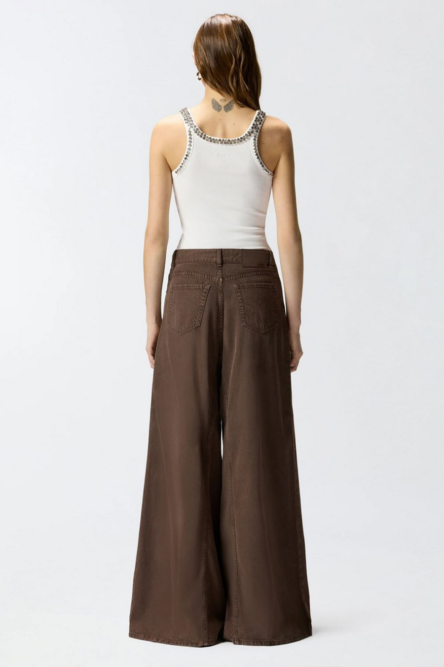 Pinko tank top made from ribbed cotton blend jersey, with crystal and stud detailing on the straps and front and back necklines.