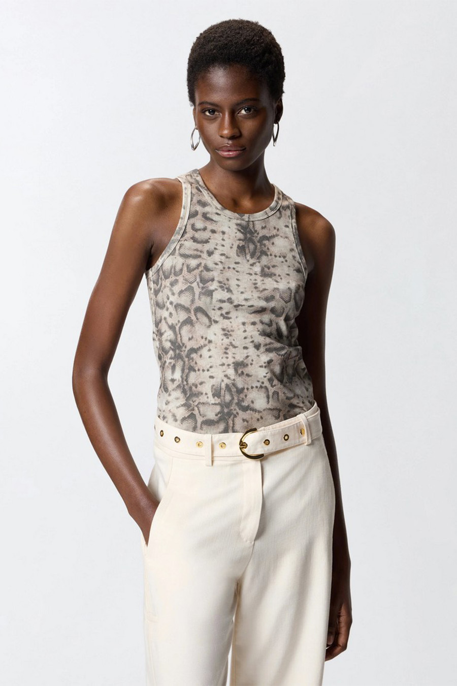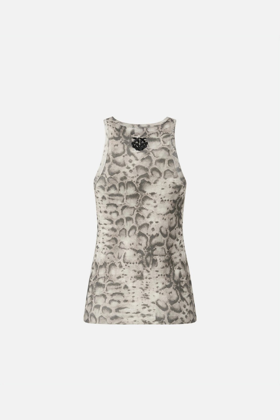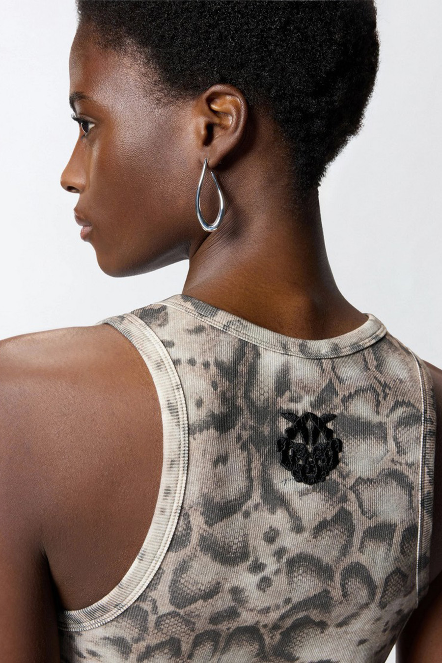 Pinko snake-print tank top with a round neckline, crafted from ribbed stretch cotton and featuring contrasting embroidery at the top of the back depicting the iconic Love Birds.