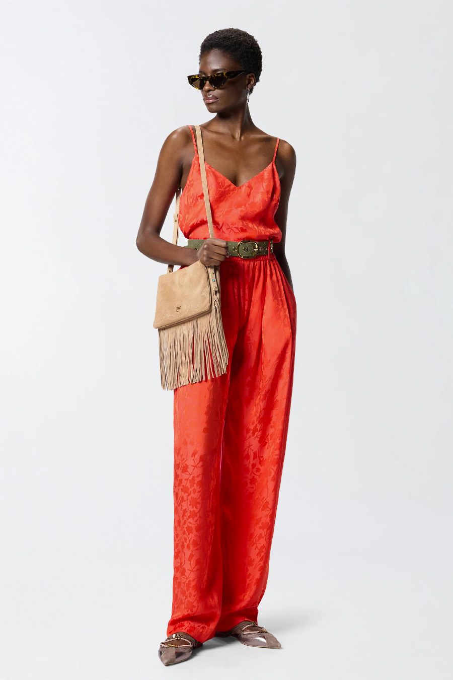 A cropped jacquard top by Pinko in a bandeau style, crafted from a viscose and modal jacquard fabric and embellished with a tone-on-tone pattern that creates a pleasing sheen-and-matte effect, featuring a slightly draped back and a wide V-neckline with thin, adjustable straps.