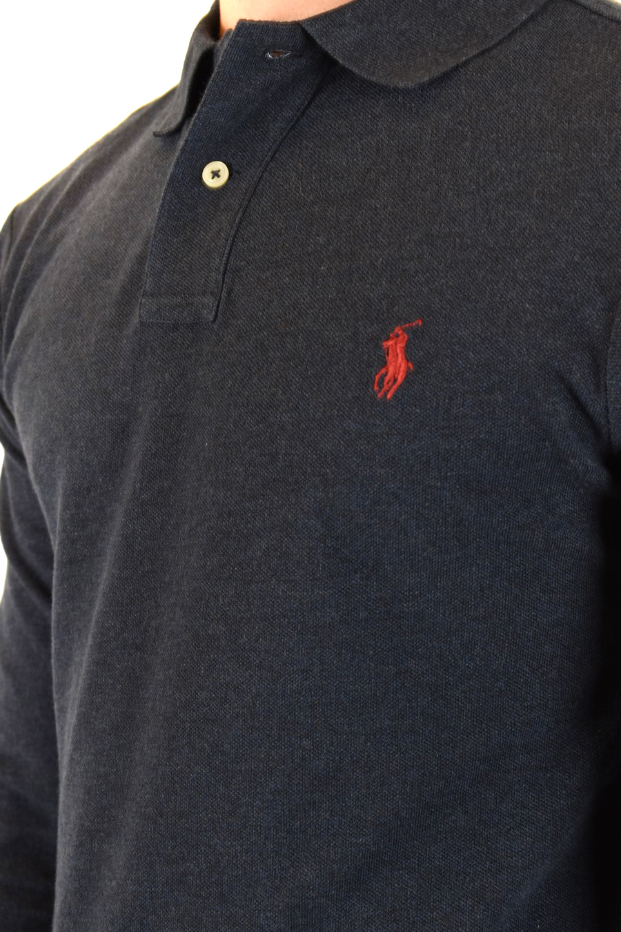 blue cotton polo from Polo Ralph Lauren featuring polo collar, two botton fastening, long sleeves, red logo in contrast embroidered to the chest, straight hem, sides slits